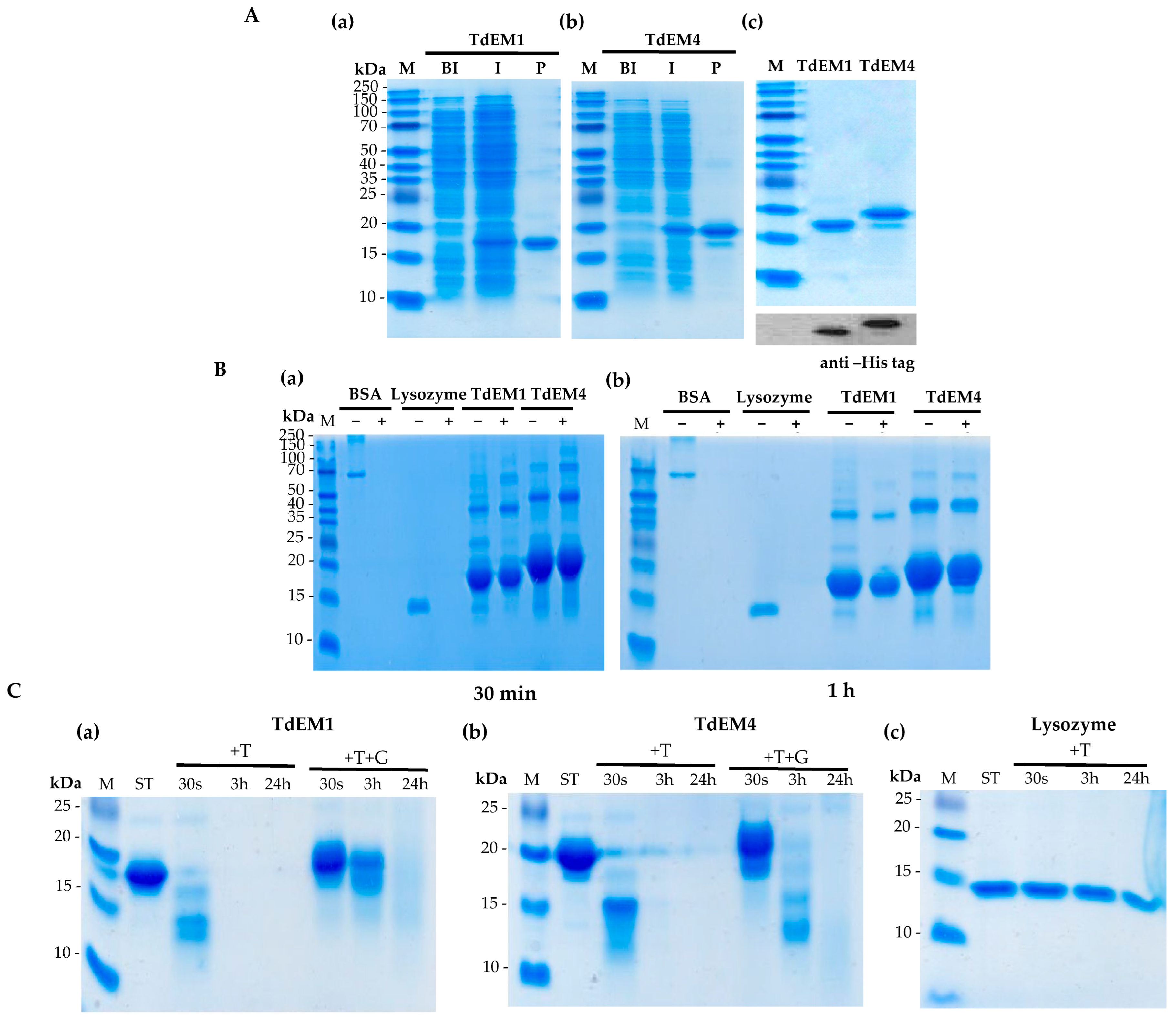 2.6. Expression, Purification, and Structural Characterization of TtEM1 and TtEM4 Proteins