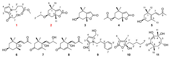 2.1. Separation and Structural Characterization for Compounds 1–11