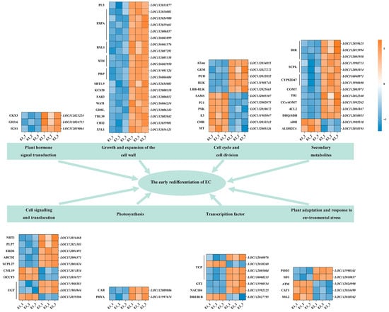 Relative expression patterns of the DEGs involved in the early stage of callus redifferentiation.