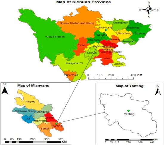 This study was conducted at the Yanting Agro-ecological Experimental Station of Purple Soil, operated by the Chinese Academy of Sciences. The station is located at 31°16′ N, 105°28′ E in Linshan village, Mianyang city, Sichuan Province, within the southwestern region of China (Figure 8). The station operates as an integral component of the Chinese Ecosystem Research Network (CERN), where a long-term field experiment has been continuously maintained since plot establishment in 2003. The subtropical monsoon climate is characterized by annual precipitation averaging 826 mm, with the majority concentrated during the wet season spanning June through September. The mean annual air temperature is 17.3 °C, with approximately 290 frost-free days per year.