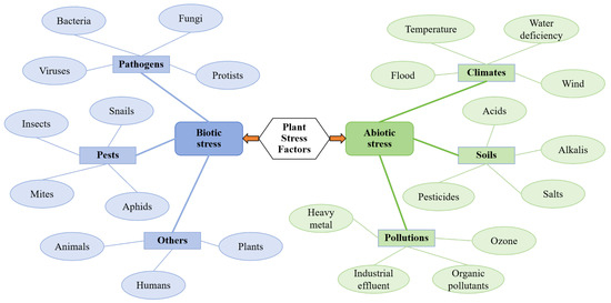 Biotic and abiotic stress factors in plants (adapted from [9]).