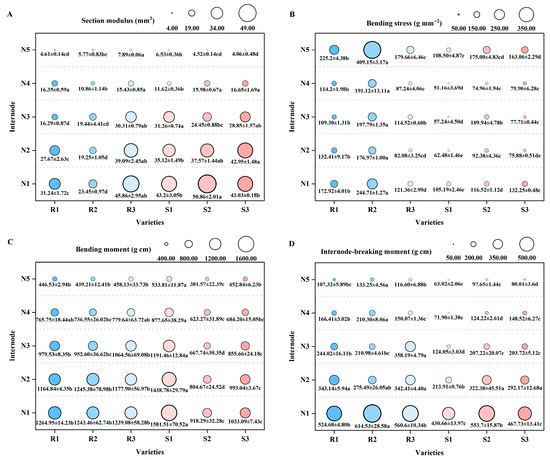 Internode bending resistance and plant bending resistance were determined using a stem strength tester (YYD-1, Top Instruments Co., Ltd., Hangzhou, China) according to the method of Lei et al. [59] and Ookawa et al. [60]. Calculate the indexes related to the mechanical properties of stems.