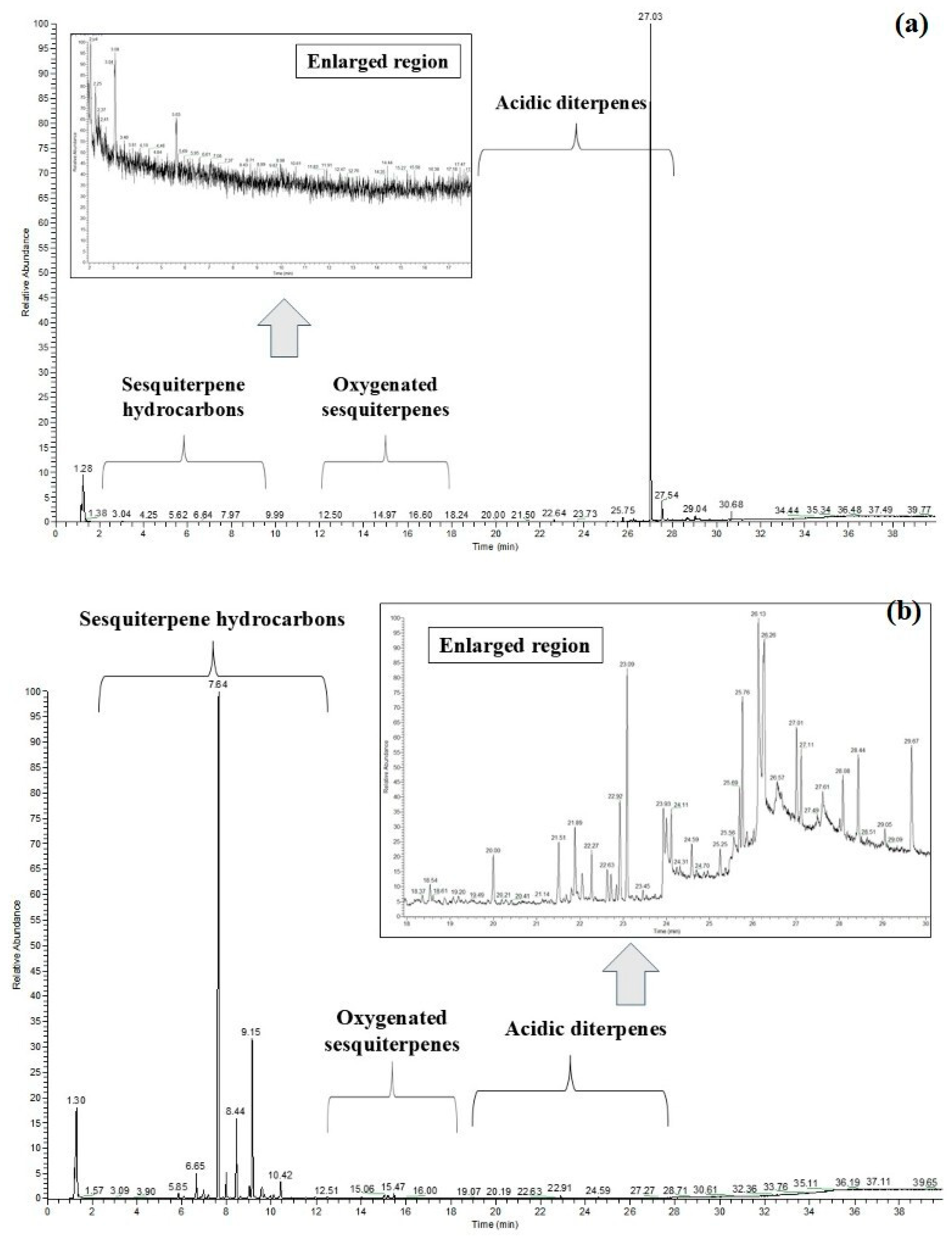 2.1. Evaluation of Sesquiterpene Presence Using GC-MS