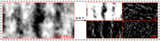 Process of discrete wavelet decomposition of a two-dimensional image (using a multispectral red-edge image as an example).