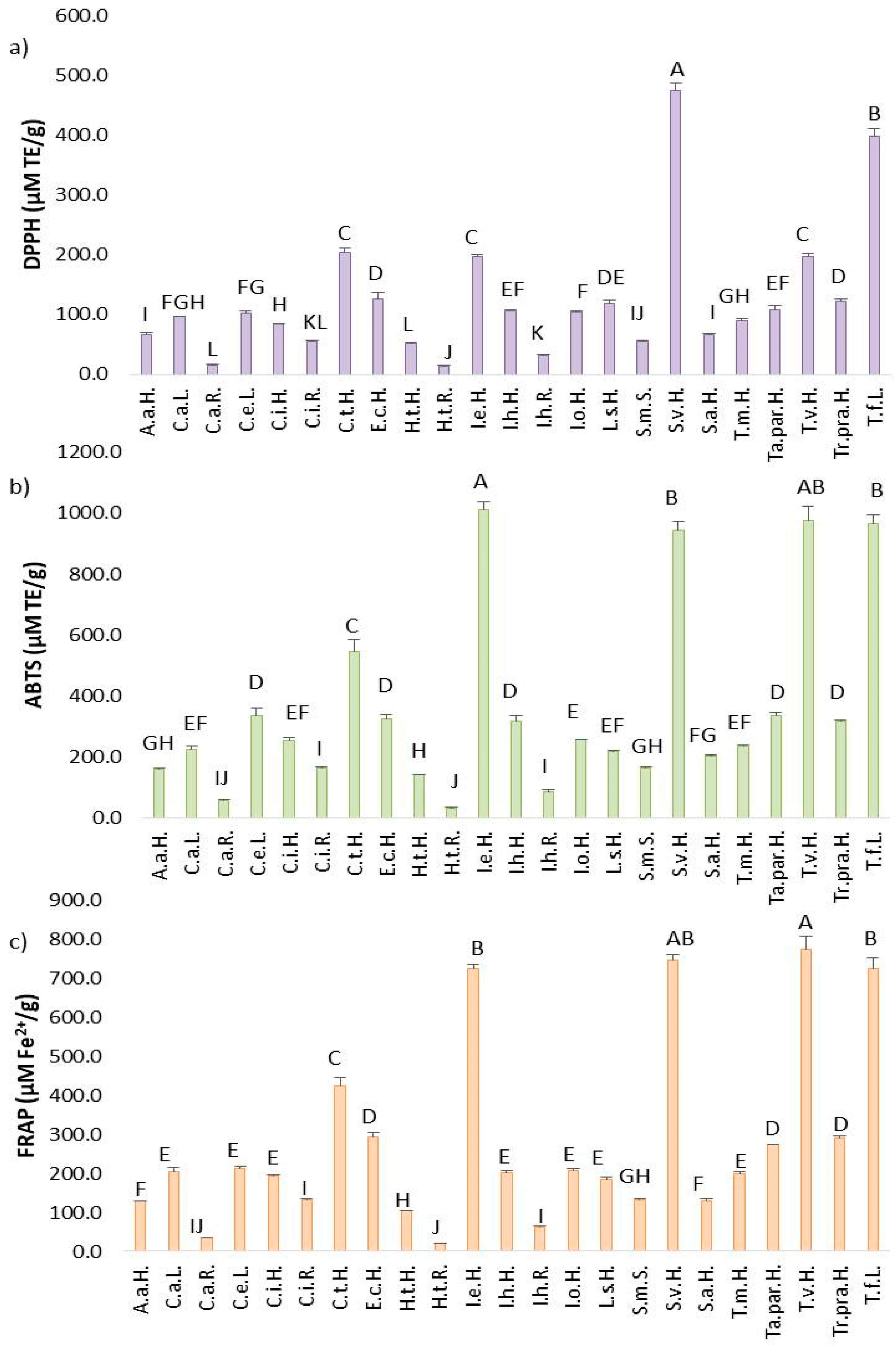 2.3. In Vitro Antioxidant Activity of Asteraceae Plant’s Extracts