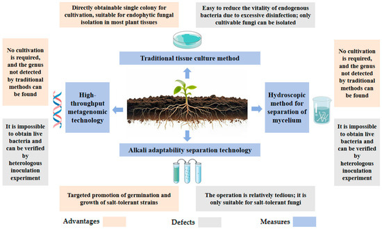 The identification and isolation of endophytic fungi resistant to salinity is the basis for studying their diversity and functions. The combination of traditional methods and high-throughput technology provides a multi-dimensional tool for analyzing fungal–plant interactions.