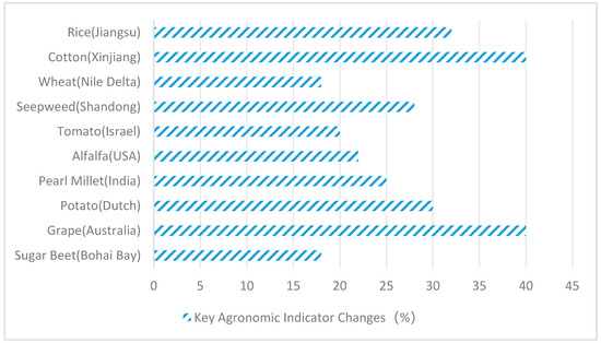 As can be seen from the comparative analysis in Figure 4, fungi and plants form a synergistic symbiosis. Although the yield increase is inconsistent under different environmental factors, both have significant effects and strong stability. As Figure 4 demonstrates, in Jiangsu Province, rice cultivation with Aspergillus flavus increased yields by 32%; in Xinjiang, cotton paired with P. simplicissimum + T. harzianum boosted fiber production by 40%; in the Nile River region, wheat combined with Fusarium verticillioides raised thousand-grain weight by 18%; in Shandong, Suaeda japonica integrated with Alternaria alternata enhanced biodiesel output by 28%; in Israel, tomatoes paired with Epicoccum nigrum increased soluble solids by 20%; in the United States, alfalfa combined with Phoma glomerata elevated crude protein by 22%; in India, pearl millet paired with Curvularia lunata boosted grain yield by 25%; in Henan, potatoes with Sarocladium strictum improved tuber starch content by 30%; in Australia, grapes with Talaromyces wortmannii increased resveratrol levels by 40%; and in the Bohai Bay region, sugar beets with Fusarium redolens raised sugar content by 18%.