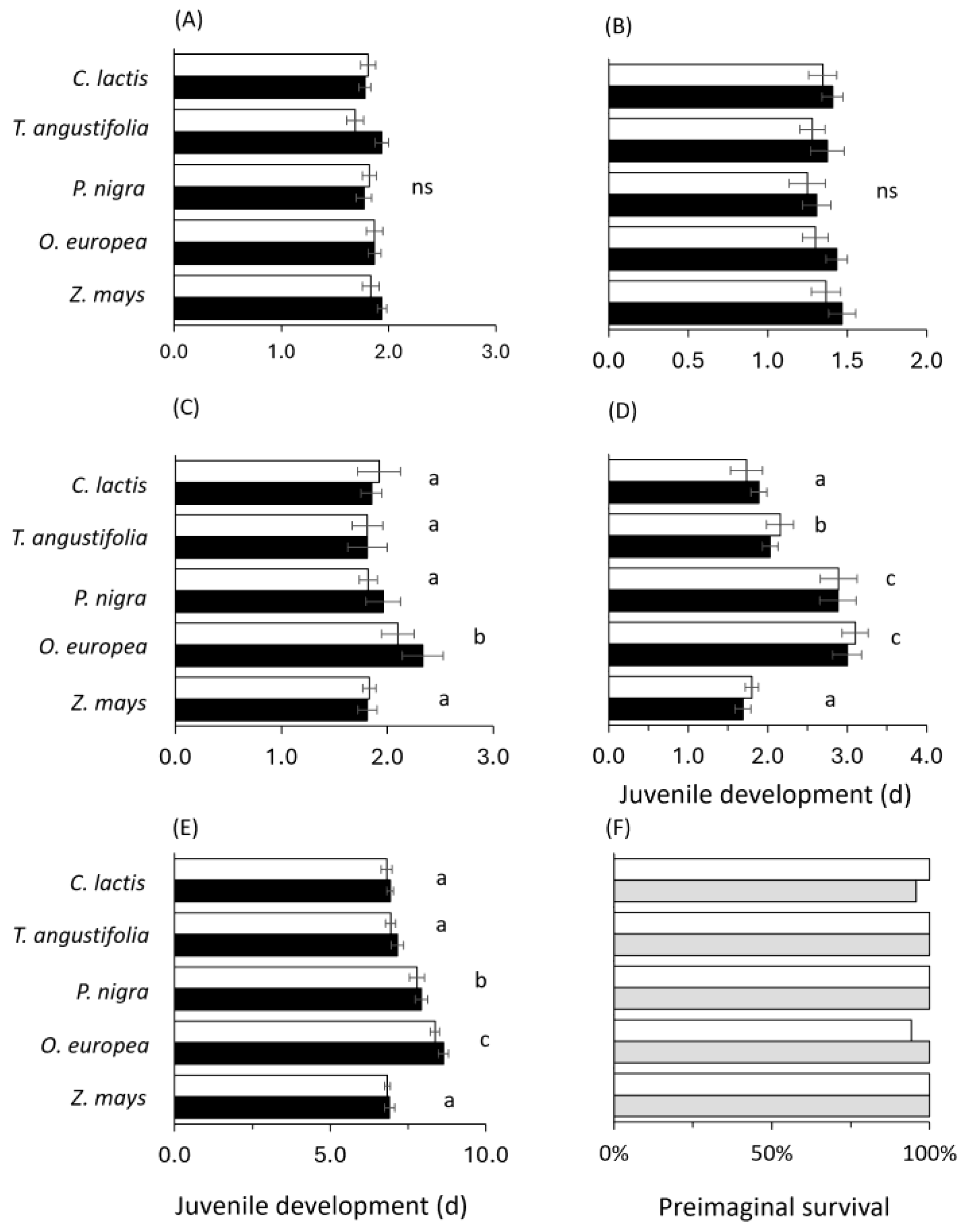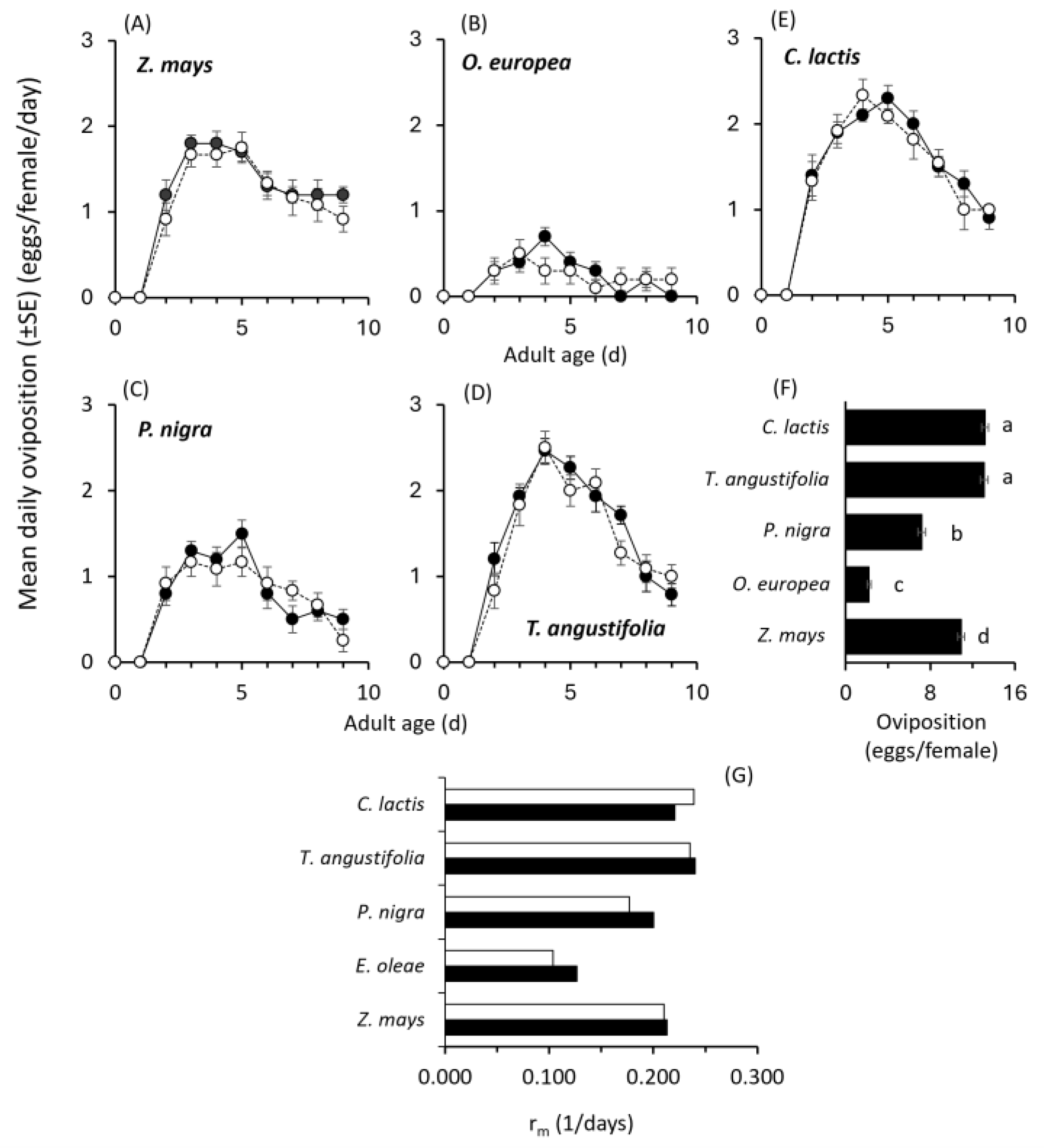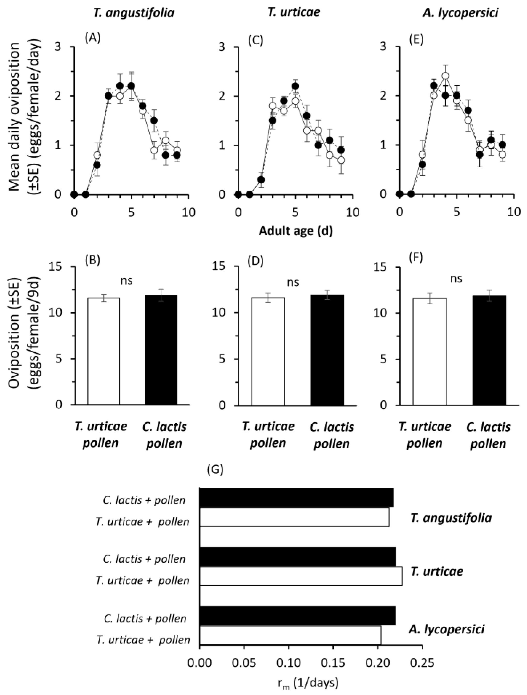 - Broufas, G.D.; Koveos, D.S. Effect of different pollens on development, survivorship and reproduction of Euseius finlandicus (Acari: Phytoseiidae). Environ. Entomol. 2000, 29, 743–749. [Google Scholar] [CrossRef]