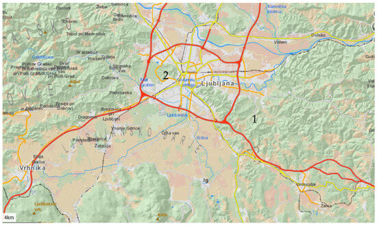Map of sampling locations (1—Orle, 2—Večna pot Biological Center).