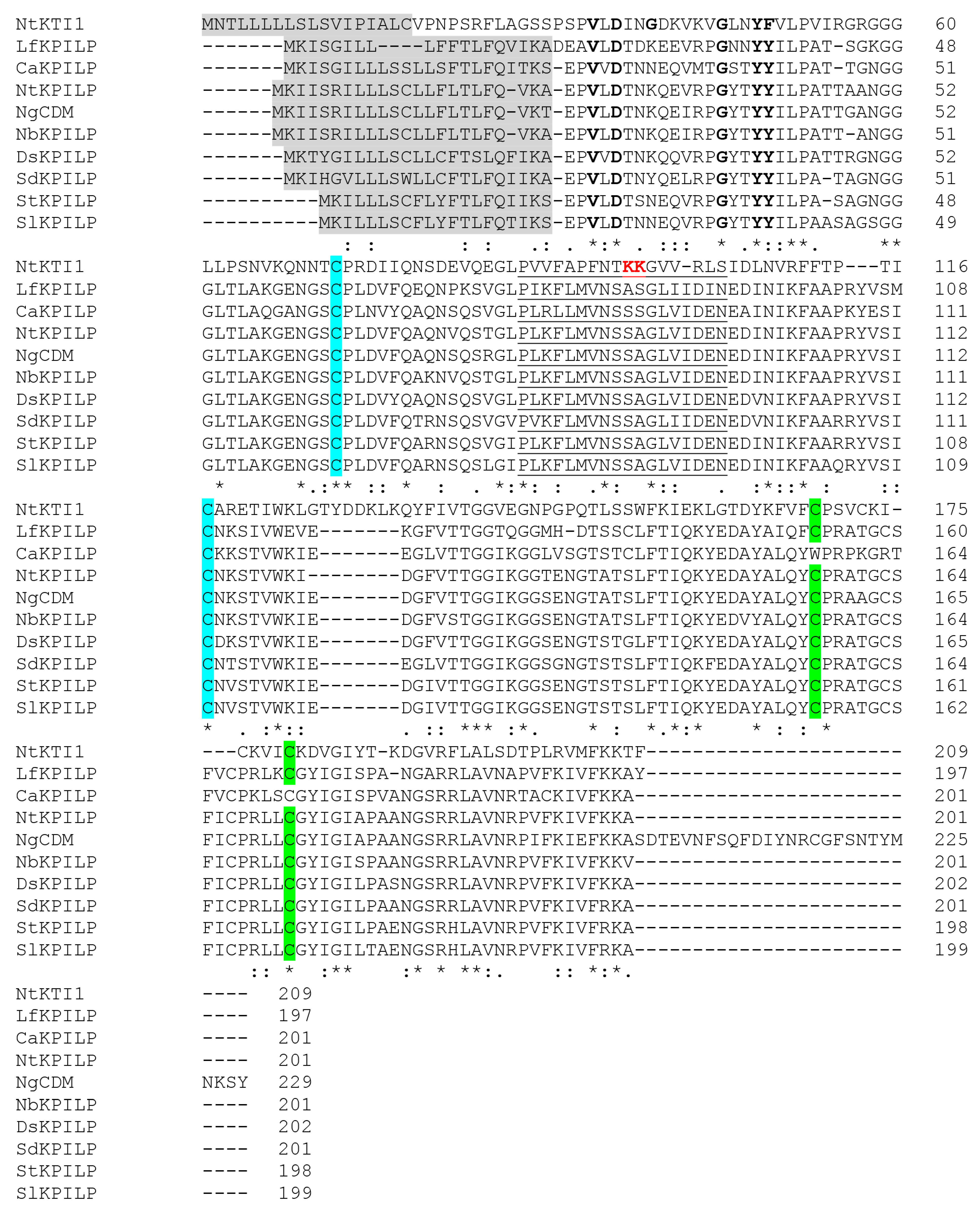 - Huang, H.; Qi, S.-D.; Qi, F.; Wu, C.-A.; Yang, G.-D.; Zheng, C.-C. NtKTI1, a Kunitz Trypsin Inhibitor with Antifungal Activity from Nicotiana tabacum, Plays an Important Role in Tobacco’s Defense Response. FEBS J. 2010, 277, 4076–4088. [Google Scholar] [CrossRef]