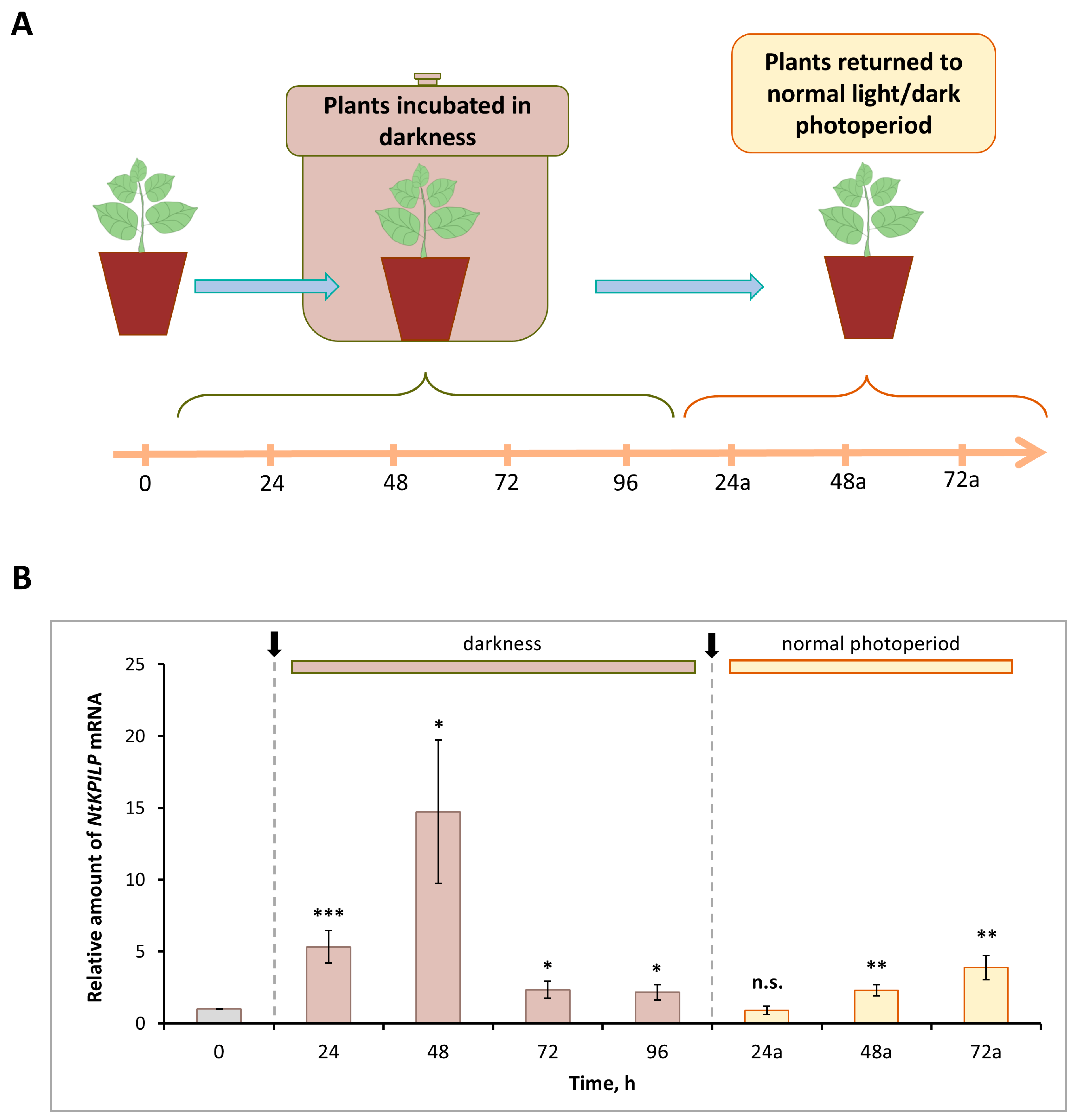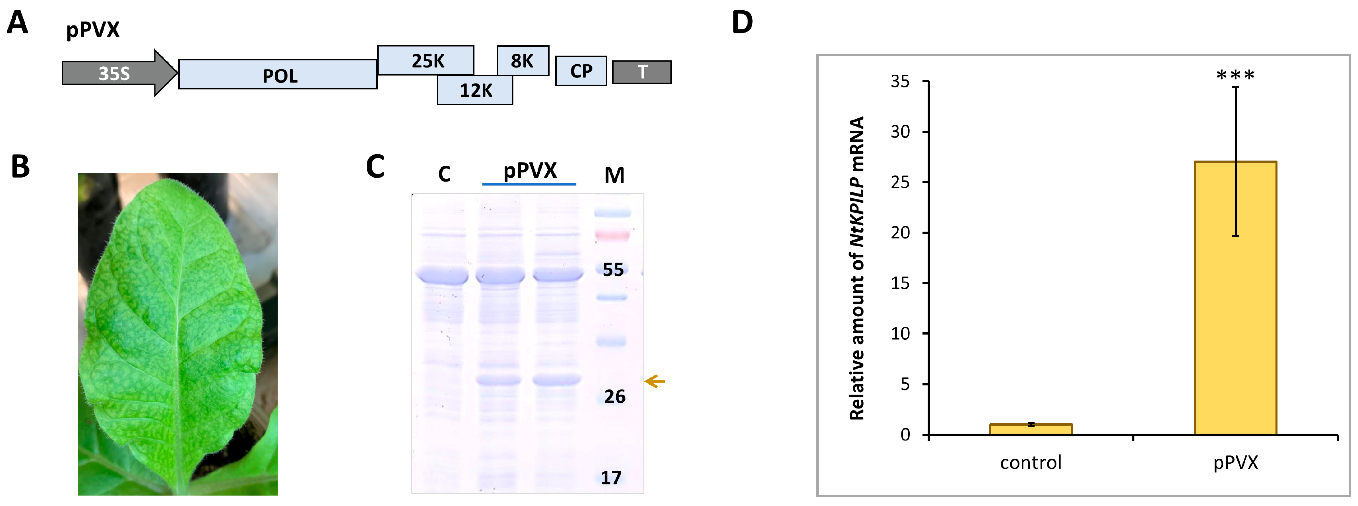 2.2. Incubation in Darkness and Systemic Viral Infection Stimulate NtKPILP mRNA Accumulation in Leaves