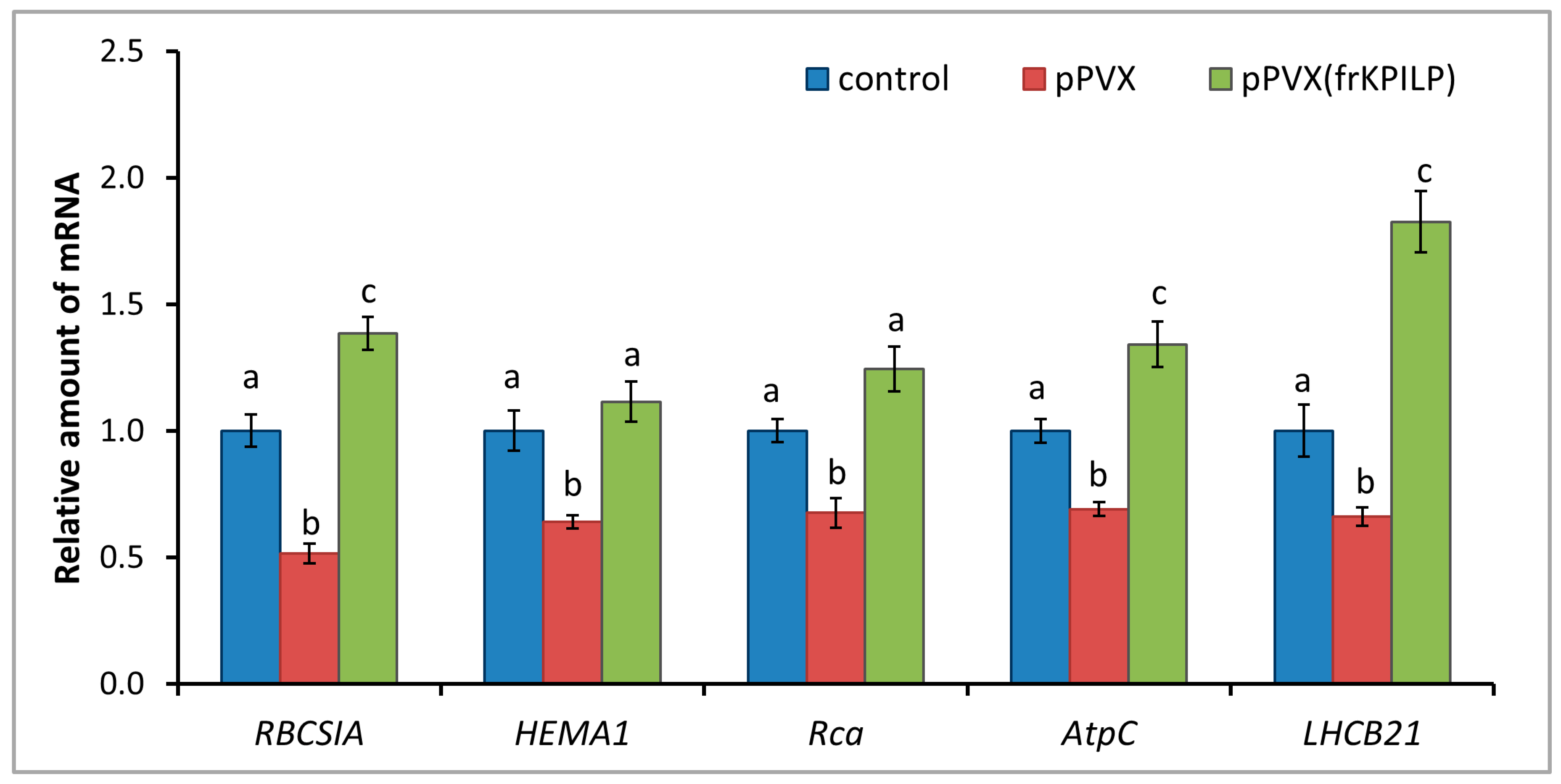 2.4. NtKPILP Is Involved in the Regulation of Chloroplast Functioning and Antiviral Defense Response in N. tabacum Leaves
