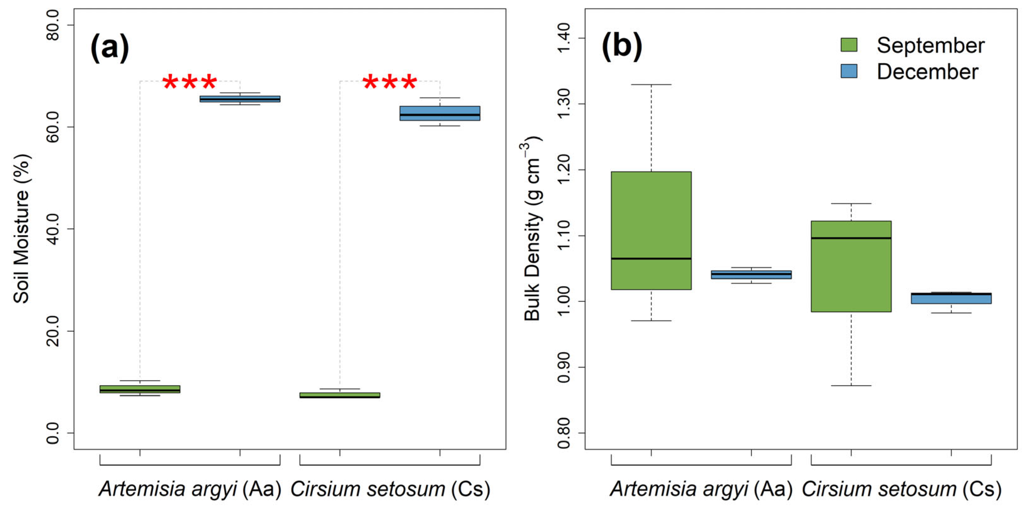 2.1. Seasonal Variation in Soil and Root Characteristics