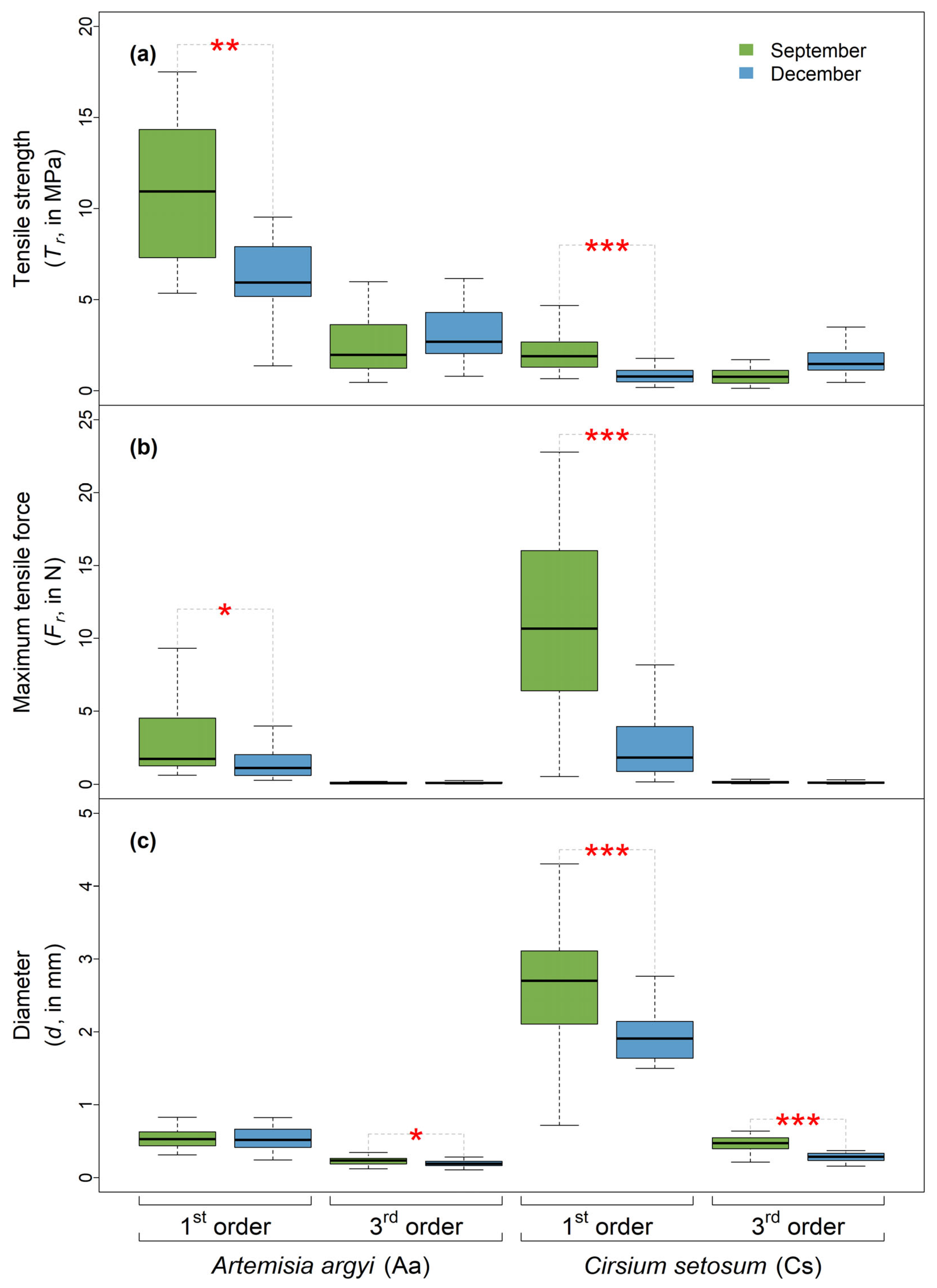 Does Root Tensile Strength Exhibit Seasonal Variation? Evidence from Two Herbaceous Species
