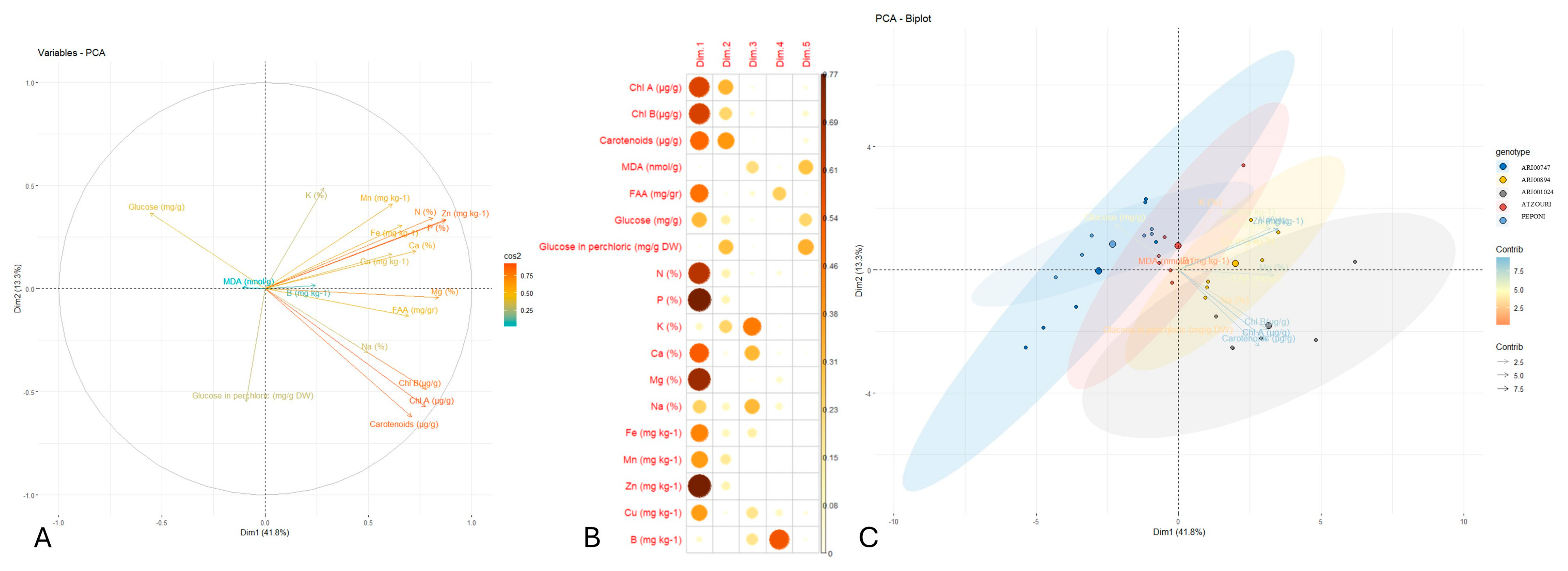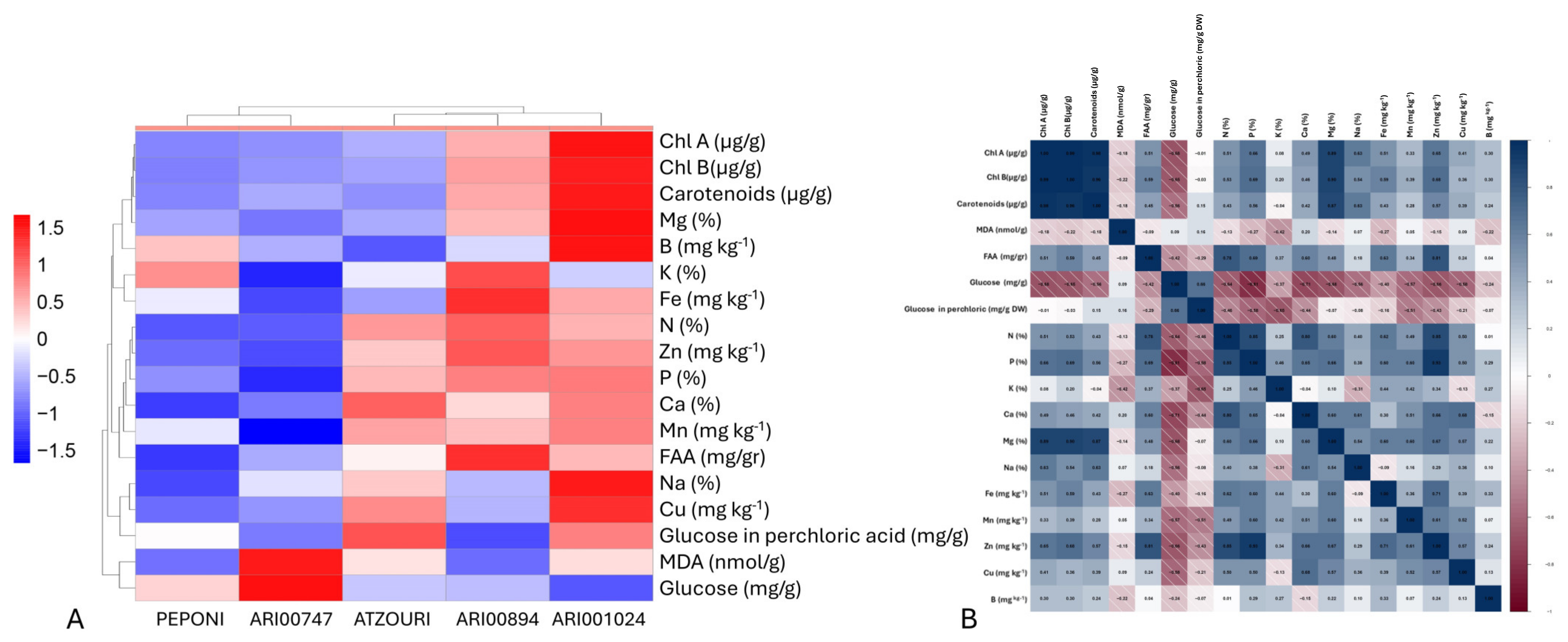 3.4. Hierarchical Clustering of Landraces, Nutrients, and Phytochemicals