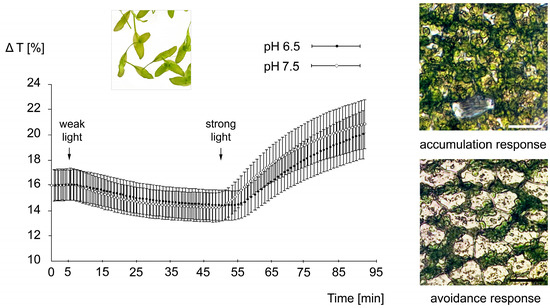 4.3. Photometric Method—Chloroplast Movement Measurements