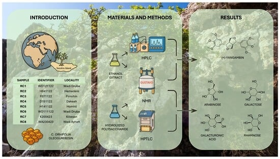 Bortolami, M.; La Montagna, D.; Toniolo, C.; Sciubba, F.; Patriarca, A.; Moretti, T.; Serafini, I.; Mura, F.; Cocco, E.; Maděra, P.; et al. Preliminary Insights into the Non-Volatile Constituents of Commiphora ornifolia (Balf.f.) J.B.Gillett Oleogum Resin from Socotra Island. Plants 2025, 14, 2999. https://doi.org/10.3390/plants14192999