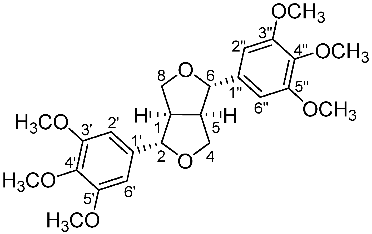 - Xu, W.H.; Zhao, P.; Wang, M.; Liang, Q. Naturally occurring furofuran lignans: Structural diversity and biological activities. Nat. Prod. Res. 2019, 33, 1357–1373. [Google Scholar] [CrossRef]