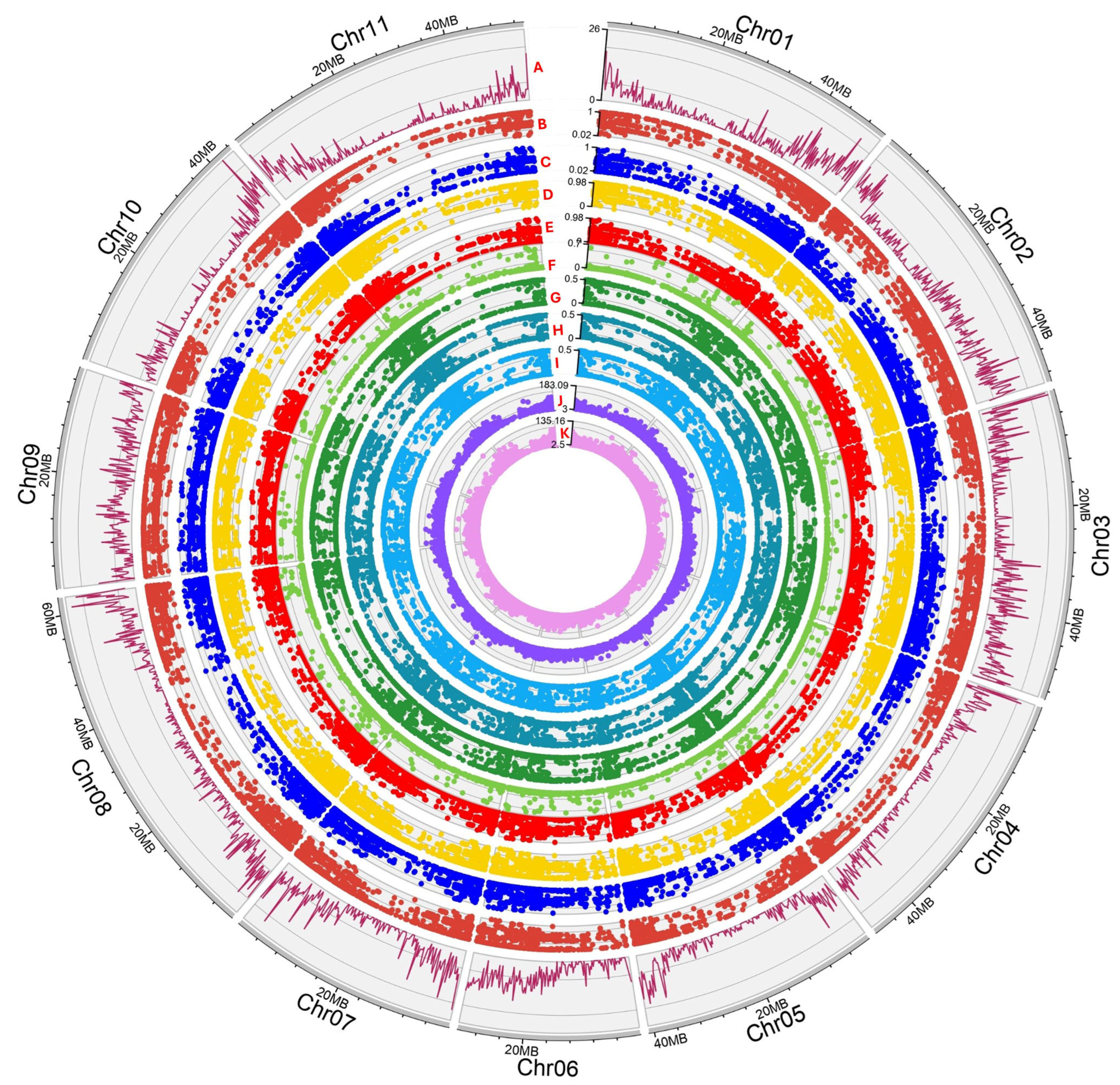 - Wang, Y.; Jia, L.; Tian, G.; Dong, Y.; Zhang, X.; Zhou, Z.; Luo, X.; Li, Y.; Yao, W. shinyCircos-V2.0: Leveraging the creation of Circos plot with enhanced usability and advanced features. iMeta 2023, 2, e109. [Google Scholar] [CrossRef] [PubMed]