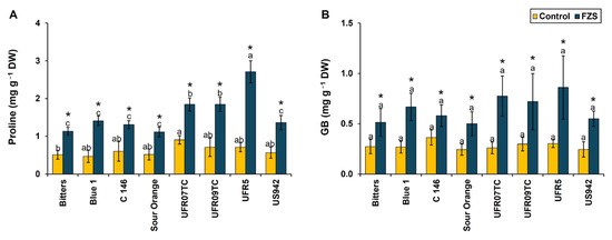 - Sharma, A.; Shahzad, B.; Kumar, V.; Kohli, S.K.; Sidhu, G.P.S.; Bali, A.S.; Handa, N.; Kapoor, D.; Bhardwaj, R.; Zheng, B. Phytohormones regulate accumulation of osmolytes under abiotic stress. Biomolecules 2019, 9, 285. [Google Scholar] [CrossRef]