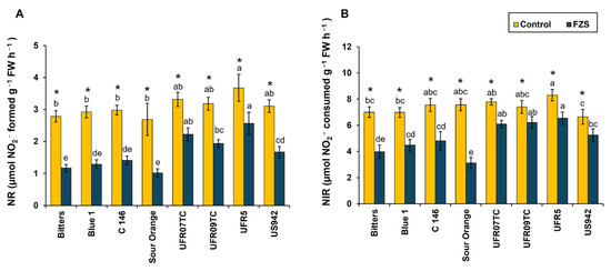 | UFR07TC | 17.1 ab | 46.4 b* | 4.0 bc | 19.6 b* | 5.3 a | 15.9 ab* | 244 a* | 195 ab | 38.0 a | 171 b* |