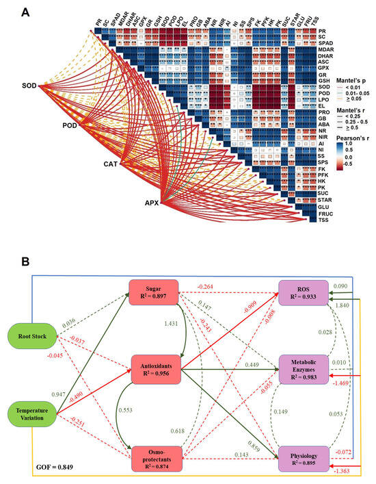 2.9. Correlation Network and Structural Equation Modeling Reveal Integrative Regulation of Freezing Tolerance by Rootstock–Scion Interactions