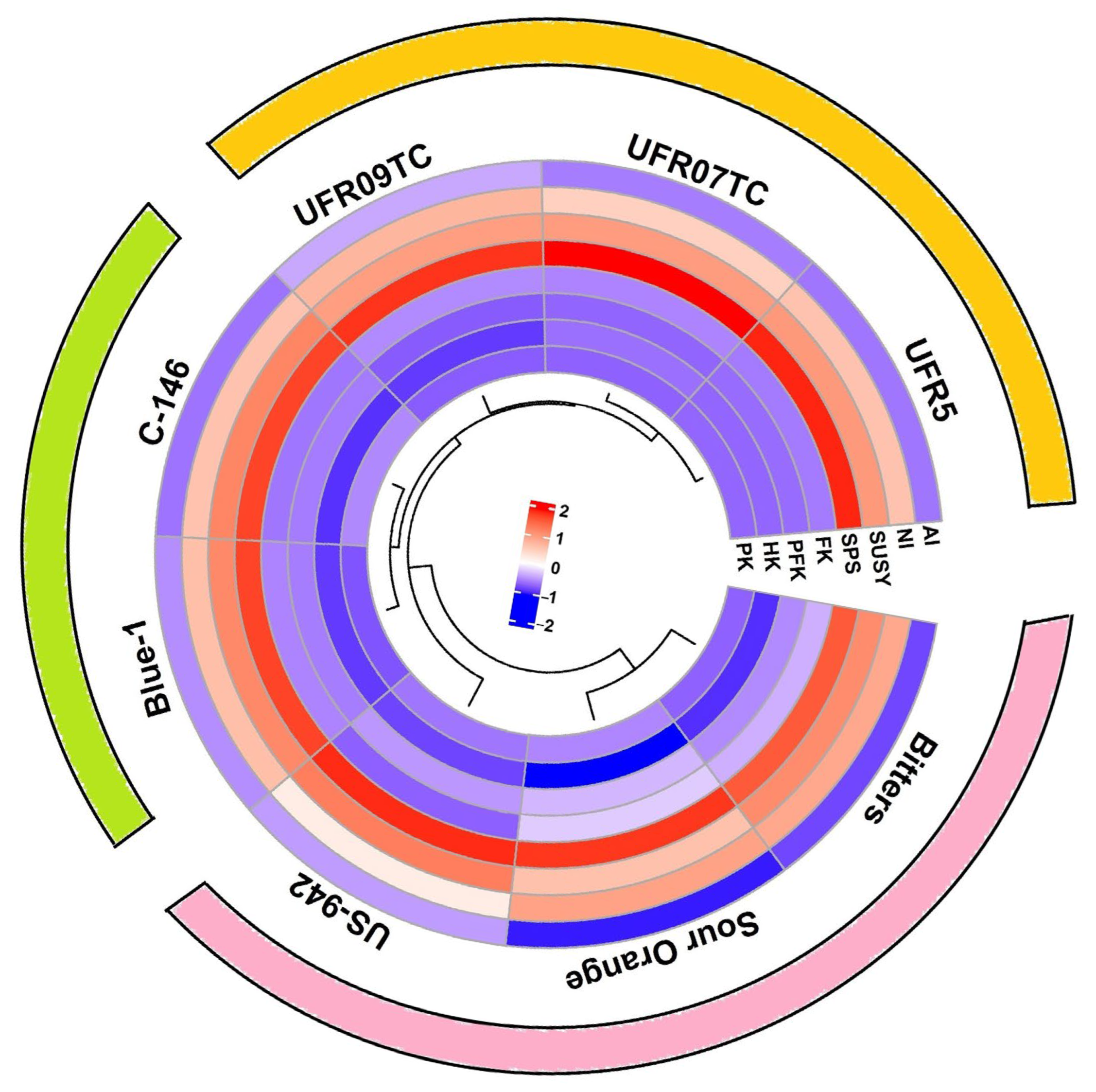 - Tang, N.; Deng, W.; Hu, N.; Chen, N.; Li, Z. Metabolite and transcriptomic analysis reveals metabolic and regulatory features associated with Powell orange pulp deterioration during room temperature and cold storage. Postharvest Biol. Technol. 2016, 112, 75–86. [Google Scholar] [CrossRef]