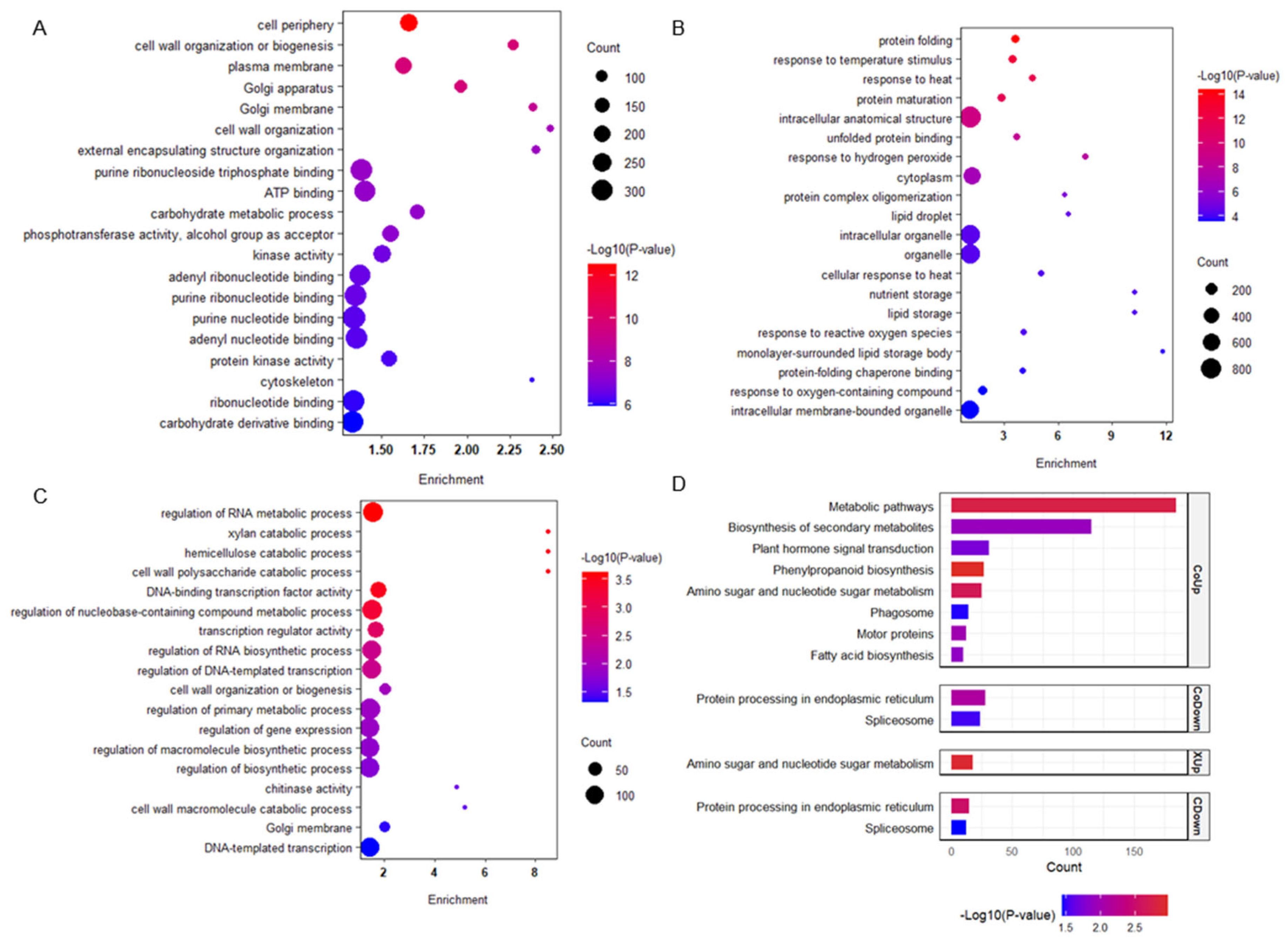 2.3. Functional Enrichment Reveals Divergent Transcriptional Strategies Underlying Coleoptile Elongation in Response to Submergence