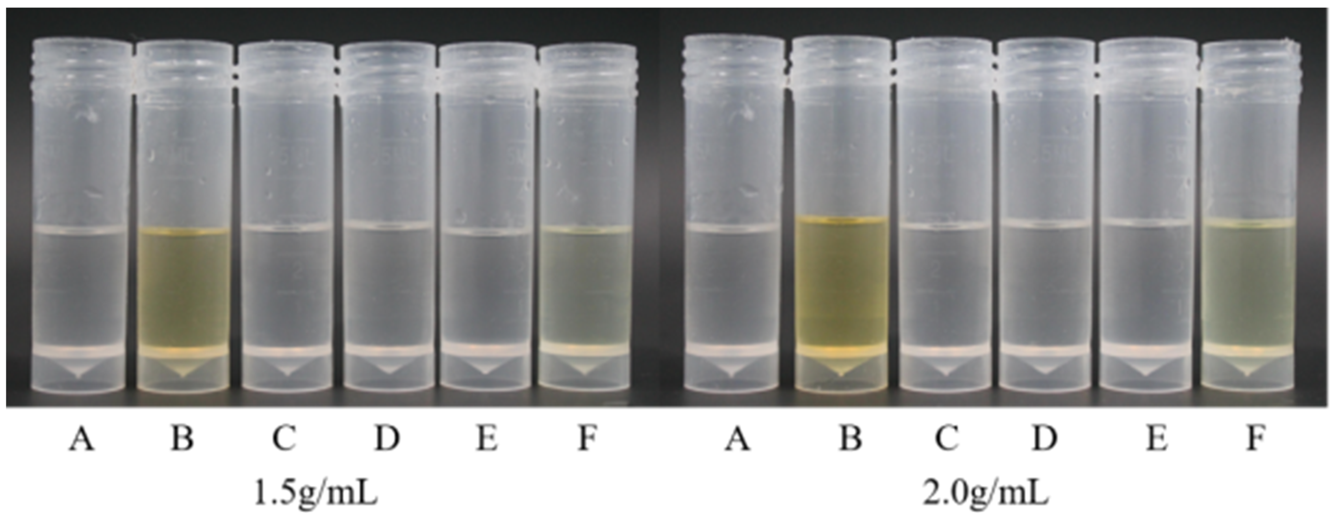 2.5.3. Determination of Emulsification Stability of BP Emulsion