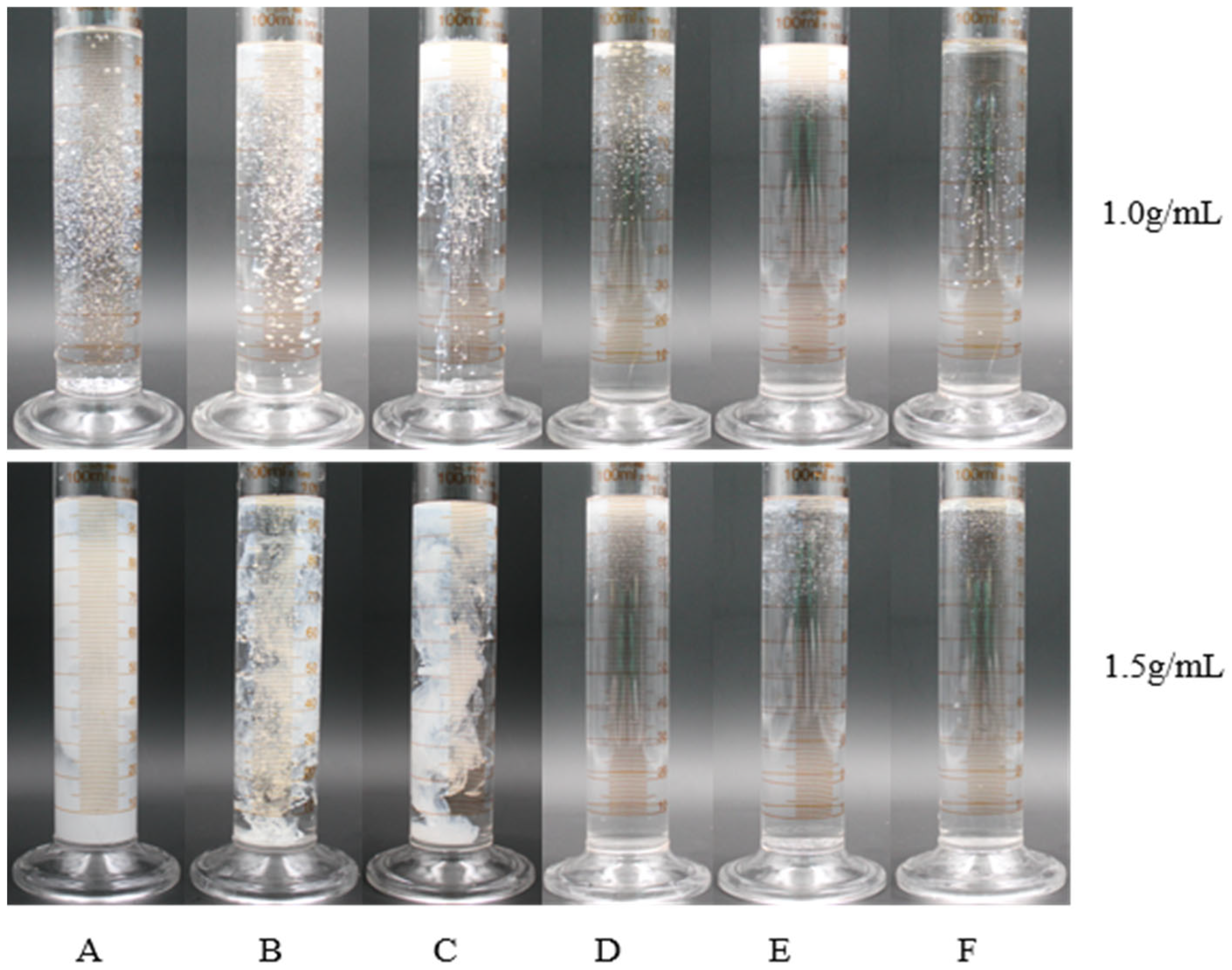 | 6 | OF-4816-B | 1.5 | Light yellow transparent | Droplet-like sinking and spreading of oil | Milky white lotion | unqualified |