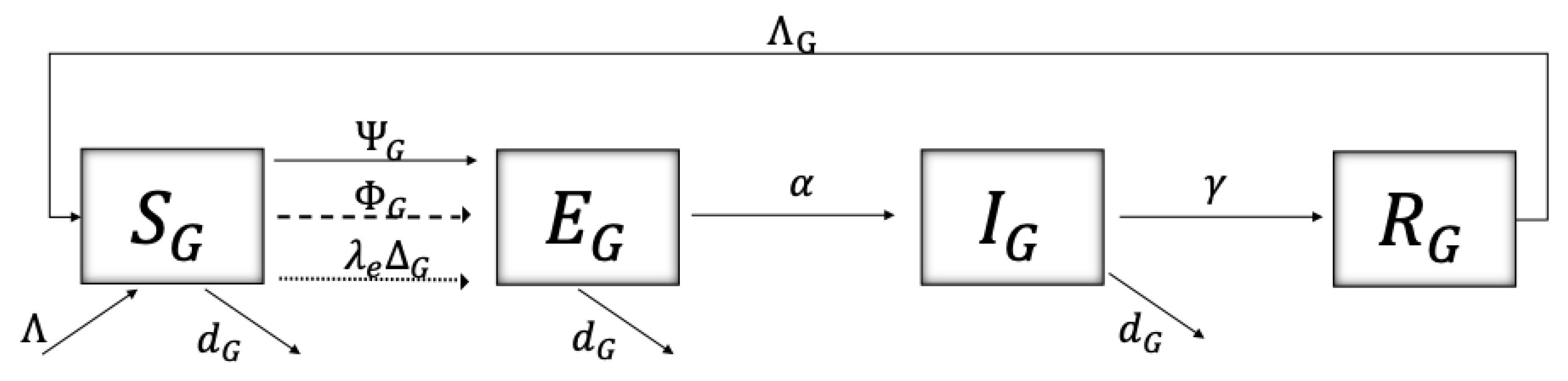 - Goleniewski, G. Modelling cultivar mixtures using SEIR compartmental models. Biom. J. 1996, 38, 281–297. [Google Scholar] [CrossRef]