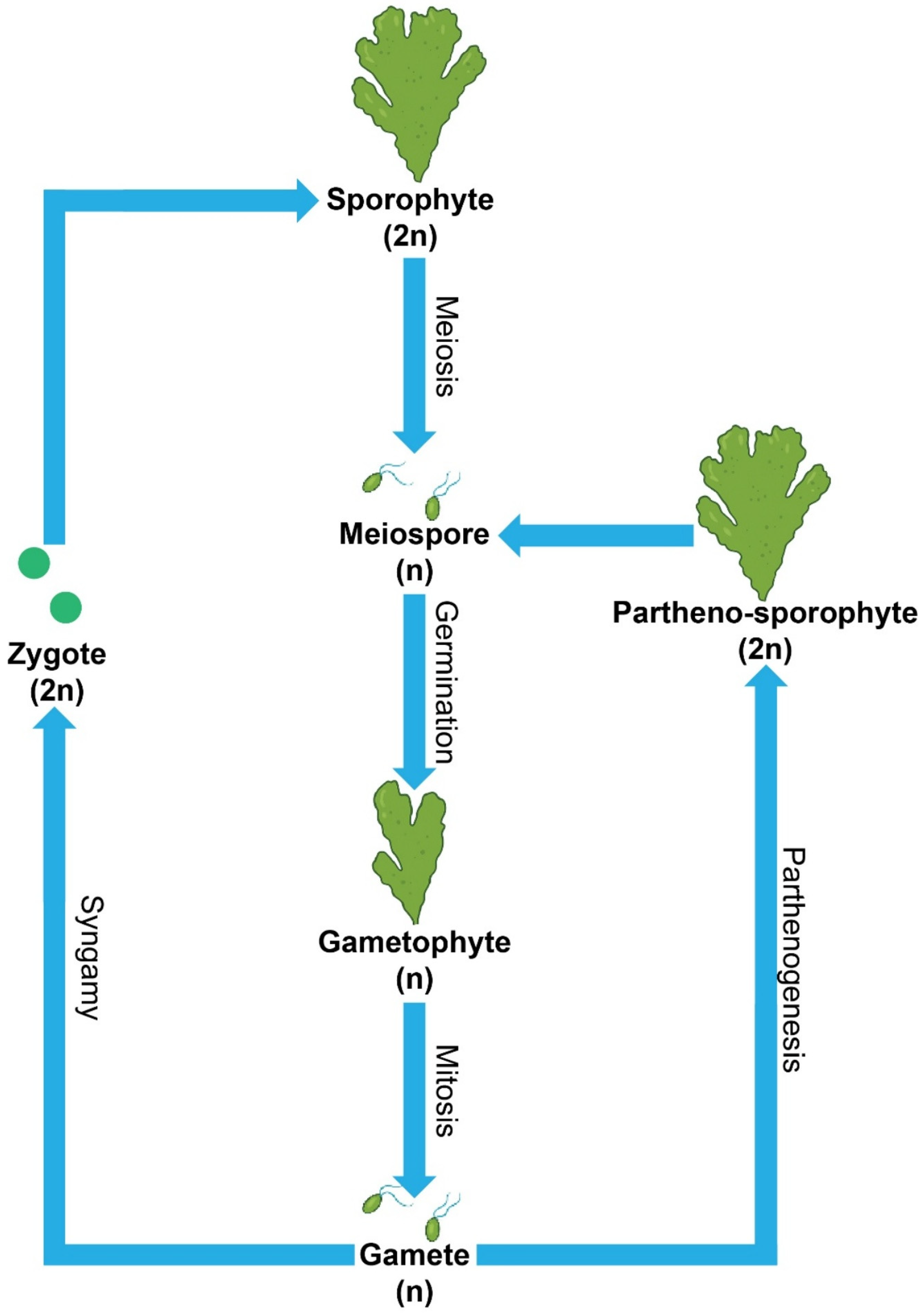- Vesty, E.F.; Kessler, R.W.; Wichard, T.; Coates, J.C. Regulation of gametogenesis and zoosporogenesis in Ulva linza (Chlorophyta): Comparison with Ulva mutabilis and potential for laboratory culture. Front. Plant Sci. 2015, 6, 1–8. [Google Scholar] [CrossRef]