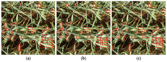 GWHD is one of the most widely recognized wheat spike detection datasets in the world. Therefore, we selected the Global Wheat Head Detection 2021 (GWHD2021) as the public dataset for this study. GWHD2021 includes wheat spike images from multiple countries and regions, featuring different cultivars, and captured under varying conditions and with different cameras. This ensures the diversity and representativeness of the dataset. Representative samples from GWHD2021 are shown in Figure 1a–c.
