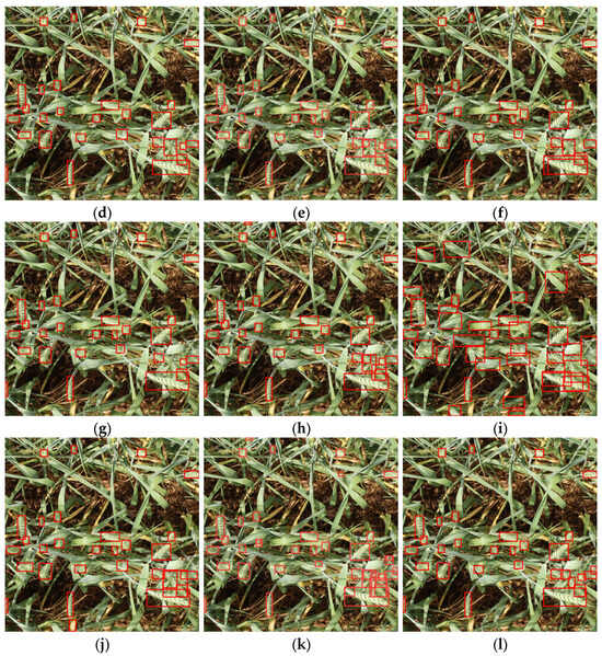 Here, denotes the element-wise multiplication. EMA effectively enhances the model’s perception of wheat spike regions while suppressing interference from non-target areas, thereby improving the discriminability and stability of the feature maps.