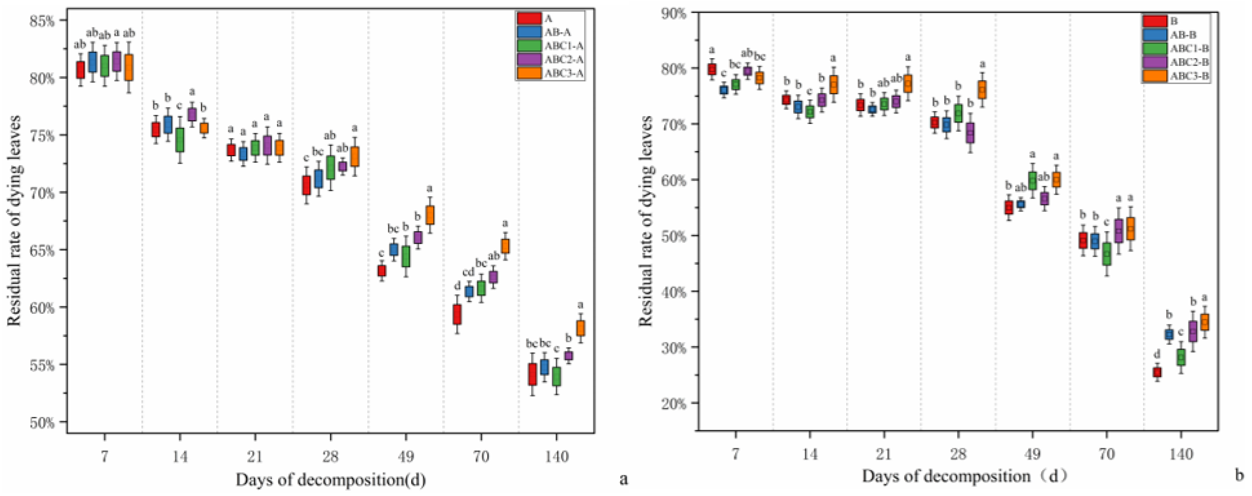 2.1.3. Decomposition Characteristics of Mixed Leaf Litter