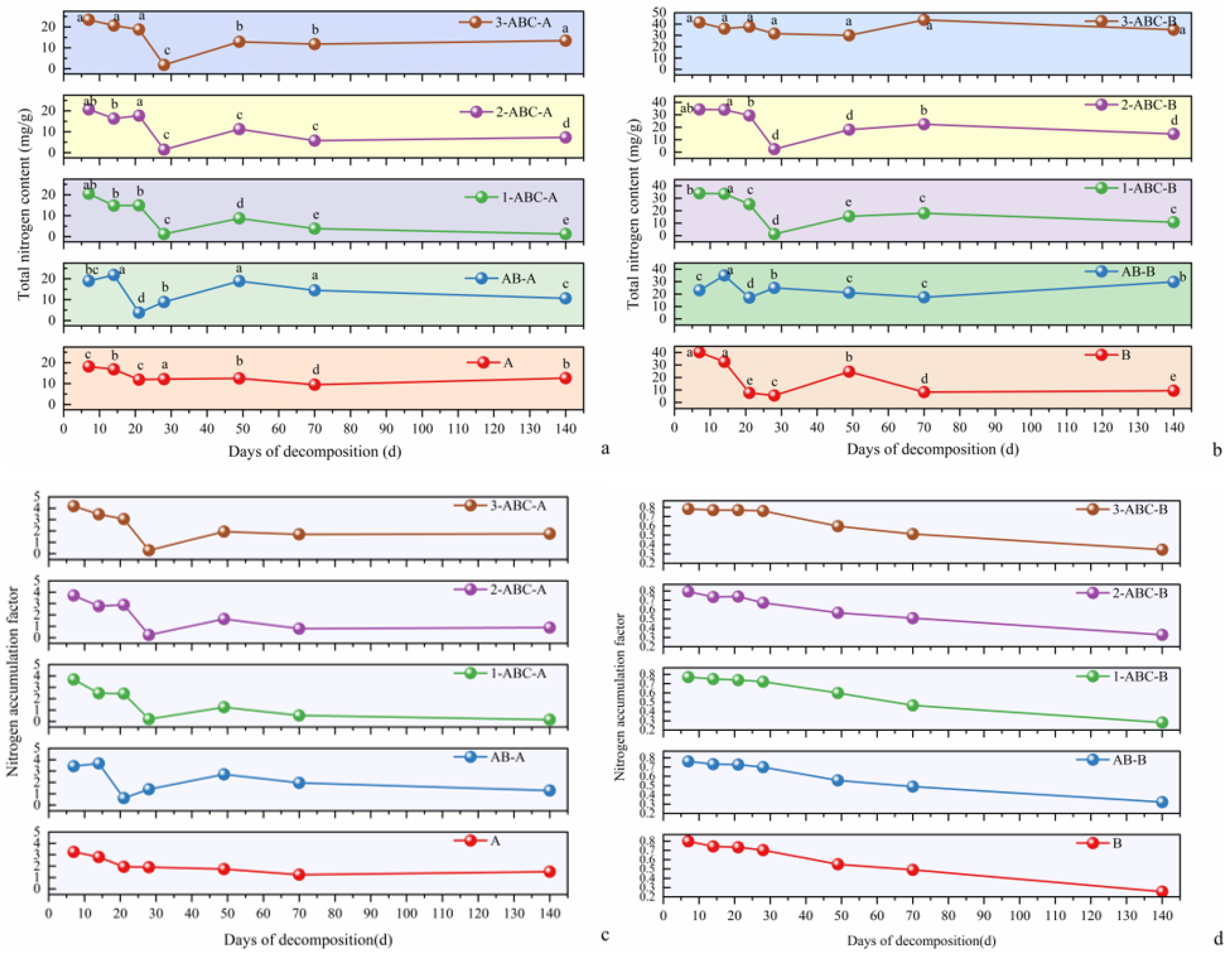 2.3. Changes in Total Nitrogen (TN) Content and the Nitrogen Accumulation Index (NAI) During Leaf Litter Decomposition