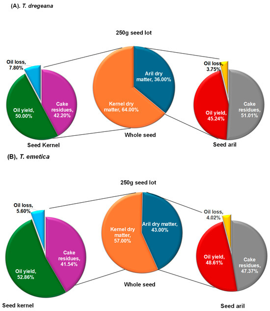 T. dregeana produced lower yields in both kernels (50.82%) and arils (45.23%) than