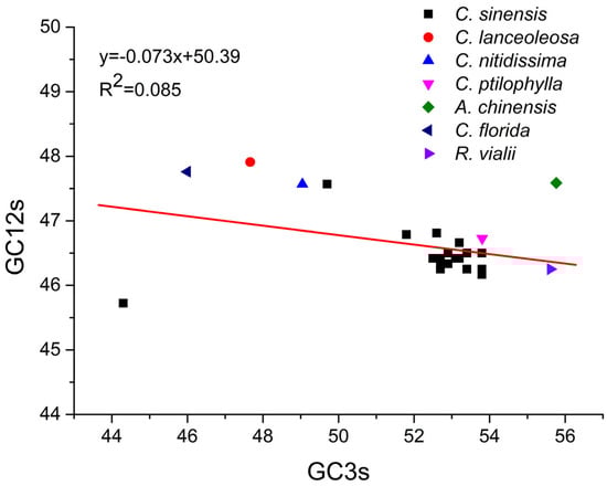 Neutrality plot analysis involves constructing a regression line by plotting GC3s against GC12s. This method is employed to evaluate the respective influences of mutational pressure and natural selection in determining CUB within genes [99]. A regression line with a slope nearing 1 suggests that CUB is largely influenced by mutational pressure, with a relatively minor role played by natural selection. In contrast, a slope approaching 0 reflects a dominant influence of selection pressure in determining codon usage patterns [100].