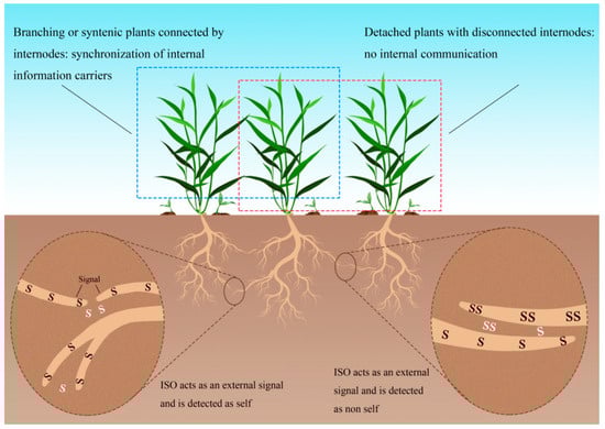 Plant self-/non-self-recognition systems display exceptional biological specificity operating across multiple organizational scales. In reproductive systems, foundational research by Nasrallah [133] established that self-incompatible Arabidopsis thaliana ecotypes can reliably distinguish self- from non-self-pollen, thereby controlling pollination outcomes, offering critical evidence for interplant recognition processes. Modern plant immunity studies have further clarified that cell surface-localized pattern recognition receptors facilitate self-/non-self-discrimination through pathogen-associated molecular pattern detection, initiating pattern-triggered immunity with precisely coordinated defense responses [134]. Importantly, these recognition processes operate beyond reproductive contexts. Research on clonal species demonstrates that vegetatively propagating Ipomoea nil establishes synchronized defense systems among ramets via belowground signaling, revealing whole-plant integration through self-recognition [135]. Systematic analyses of shoot–root interactions confirm that rhizosphere signaling networks and resource competition significantly shape aboveground phenotypic responses, with defense coordination being governed by root-mediated self-identification mechanisms.