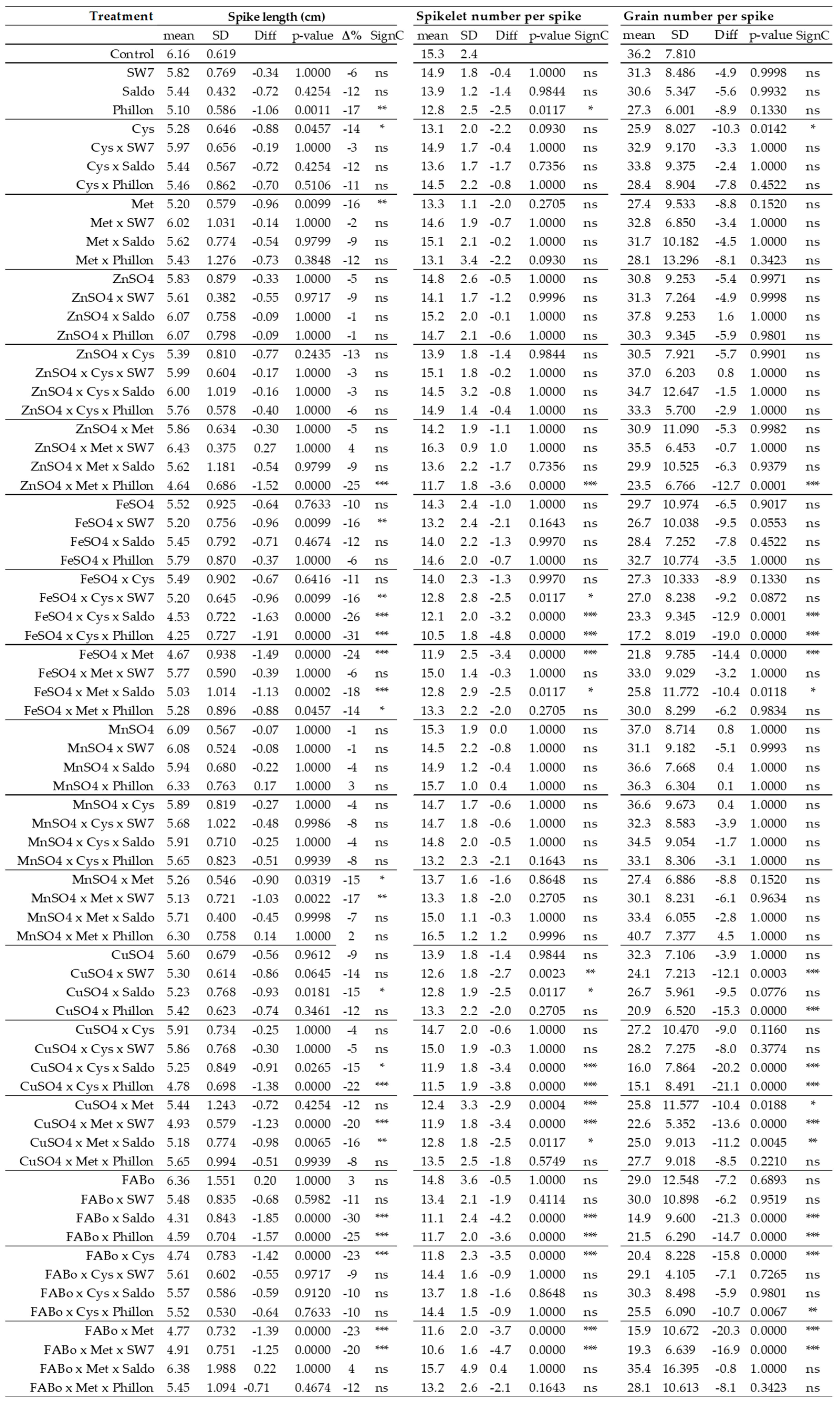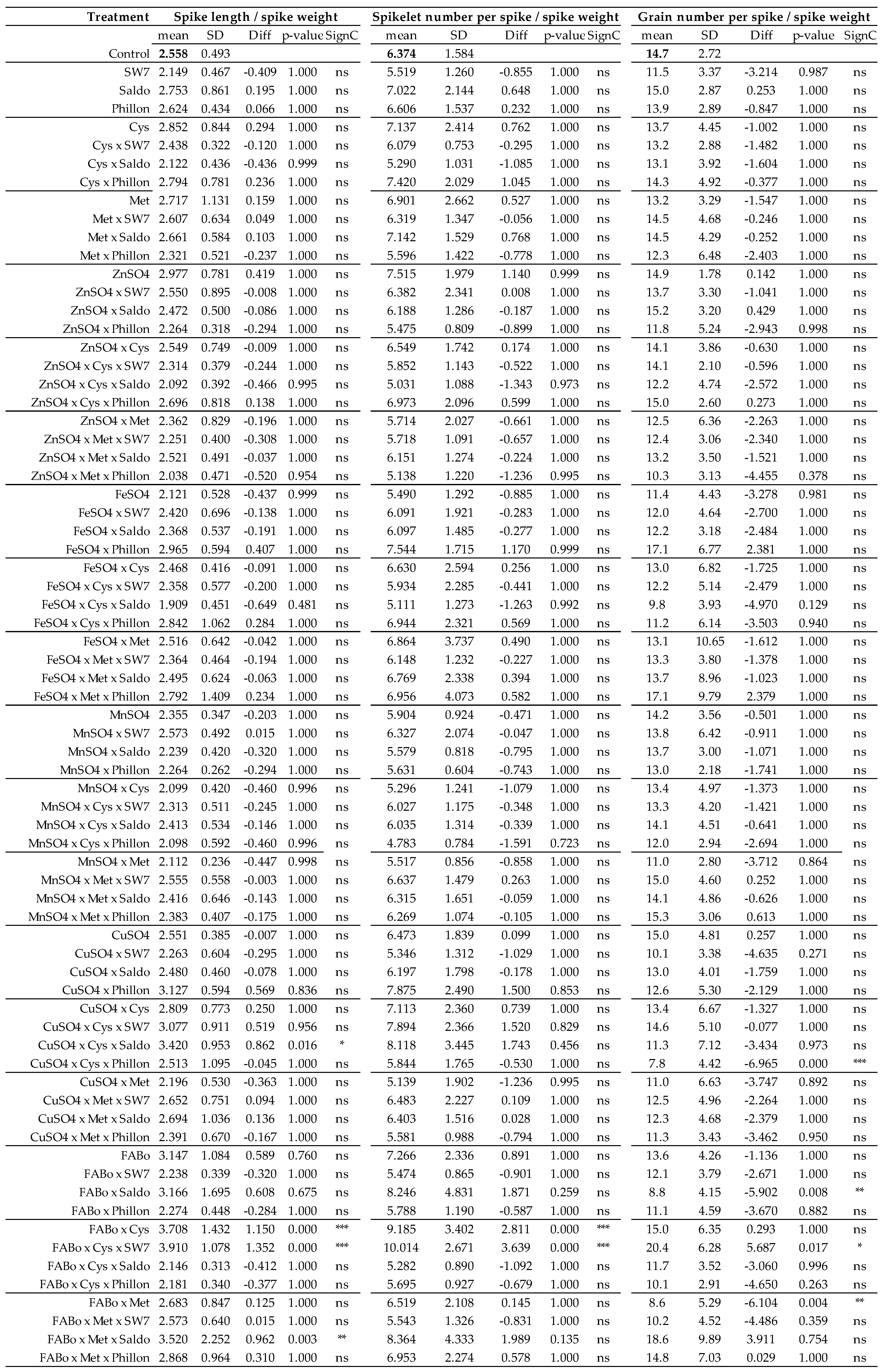 Morphological Acclimation of Durum Wheat Spikes in Response to Foliar Micronutrient Applications
