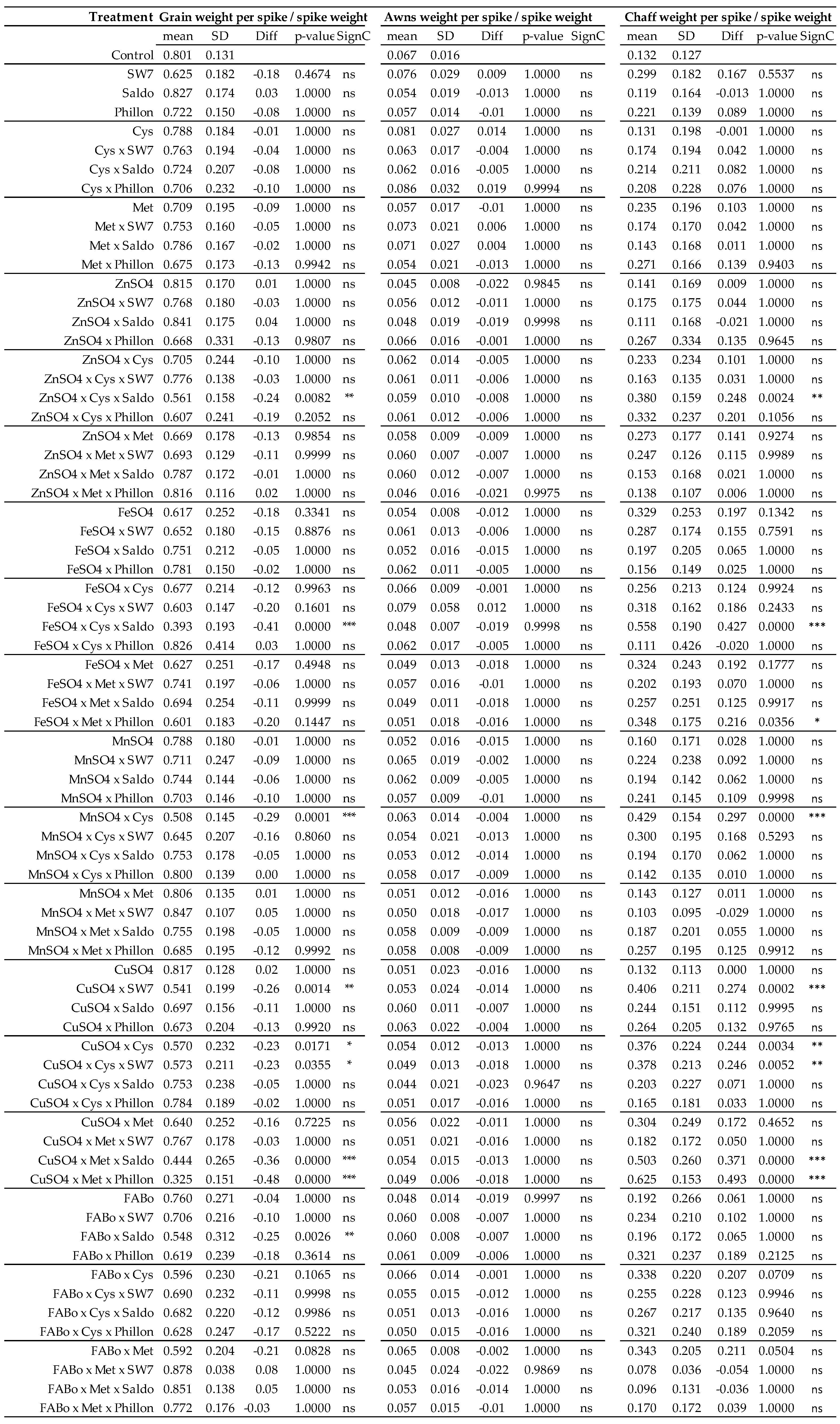 - Klikocka, H.; Marks, M. Sulphur and nitrogen fertilization as a potential means of agronomic biofortification to improve the content and uptake of microelements in spring wheat grain DM. J. Chem. 2018, 2018, 9326820. [Google Scholar] [CrossRef]