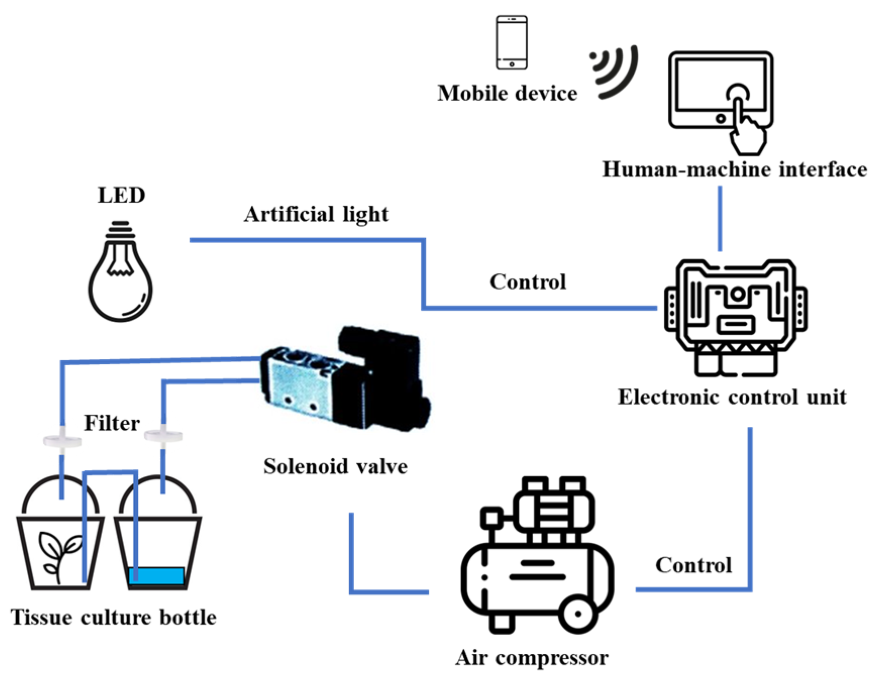 - Etienne, H.; Berthouly, M. Temporary immersion systems in plant micropropagation. Plant Cell Tissue Organ Cult. 2002, 69, 215–231. [Google Scholar] [CrossRef]