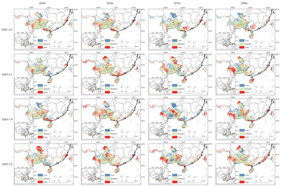2.4. Changes in Potential Distribution Areas Under Future Climate Change