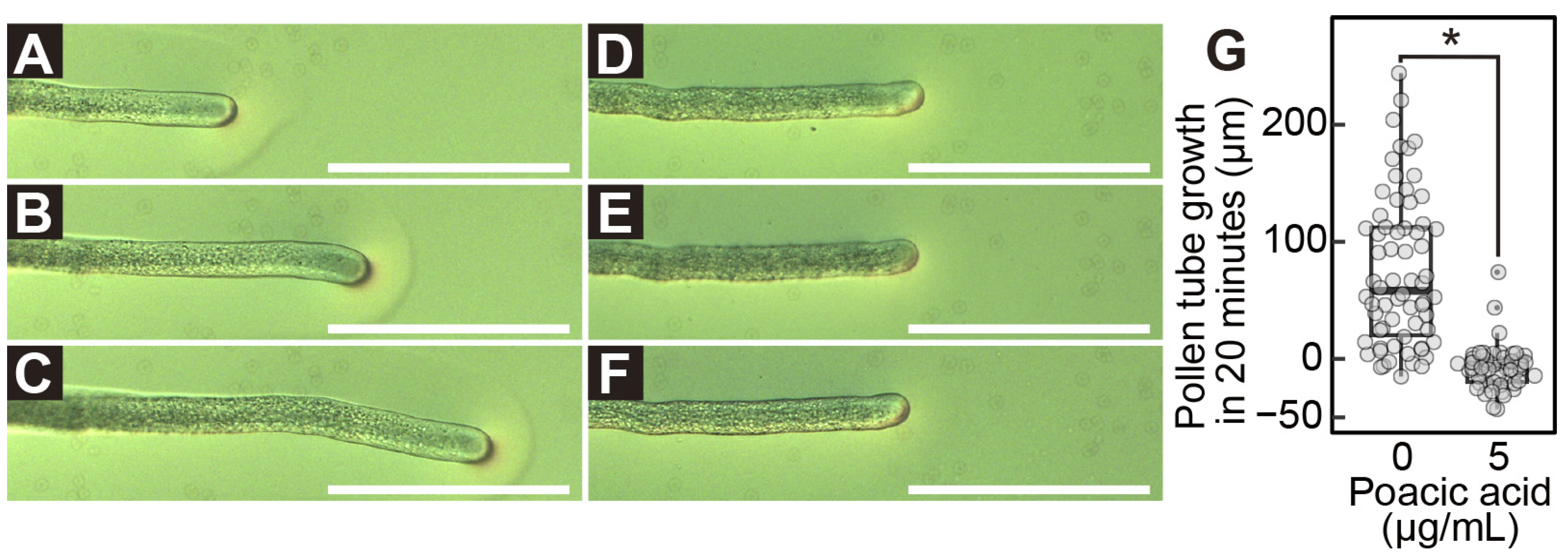 Kobayashi, N.; Ohya, Y.; Hayashi, Y.; Nishikawa, S.-i. A Plant-Derived Antifungal Agent, Poacic Acid, Inhibits Germination and Tube Growth of Lily Pollen. Plants 2025, 14, 3093. https://doi.org/10.3390/plants14193093