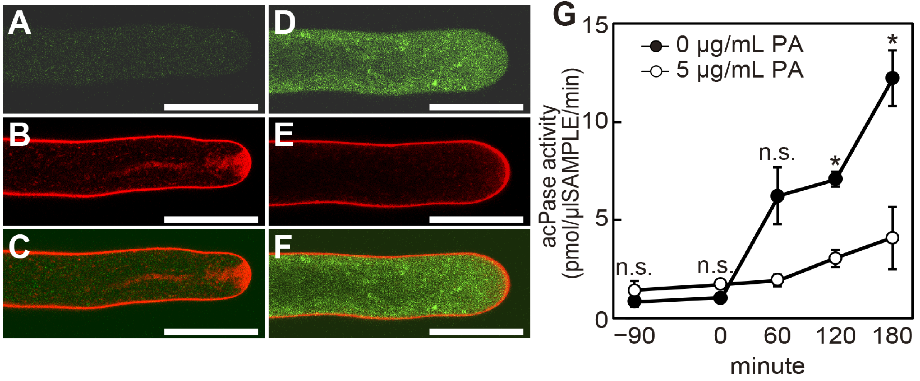 - Pfeiffer, W. Auxin Induces Exocytosis of Acid Phosphatase in Coleoptiles from Zea Mays. Physiol. Plant. 1996, 98, 773–779. [Google Scholar] [CrossRef]