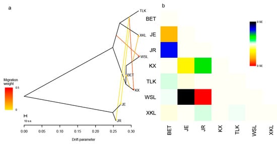 - Pickrell, J.K.; Pritchard, J.K. Inference of population splits and mixtures from genome-wide allele frequency data. PLoS Genet. 2012, 8, e1002967. [Google Scholar] [CrossRef] [PubMed]