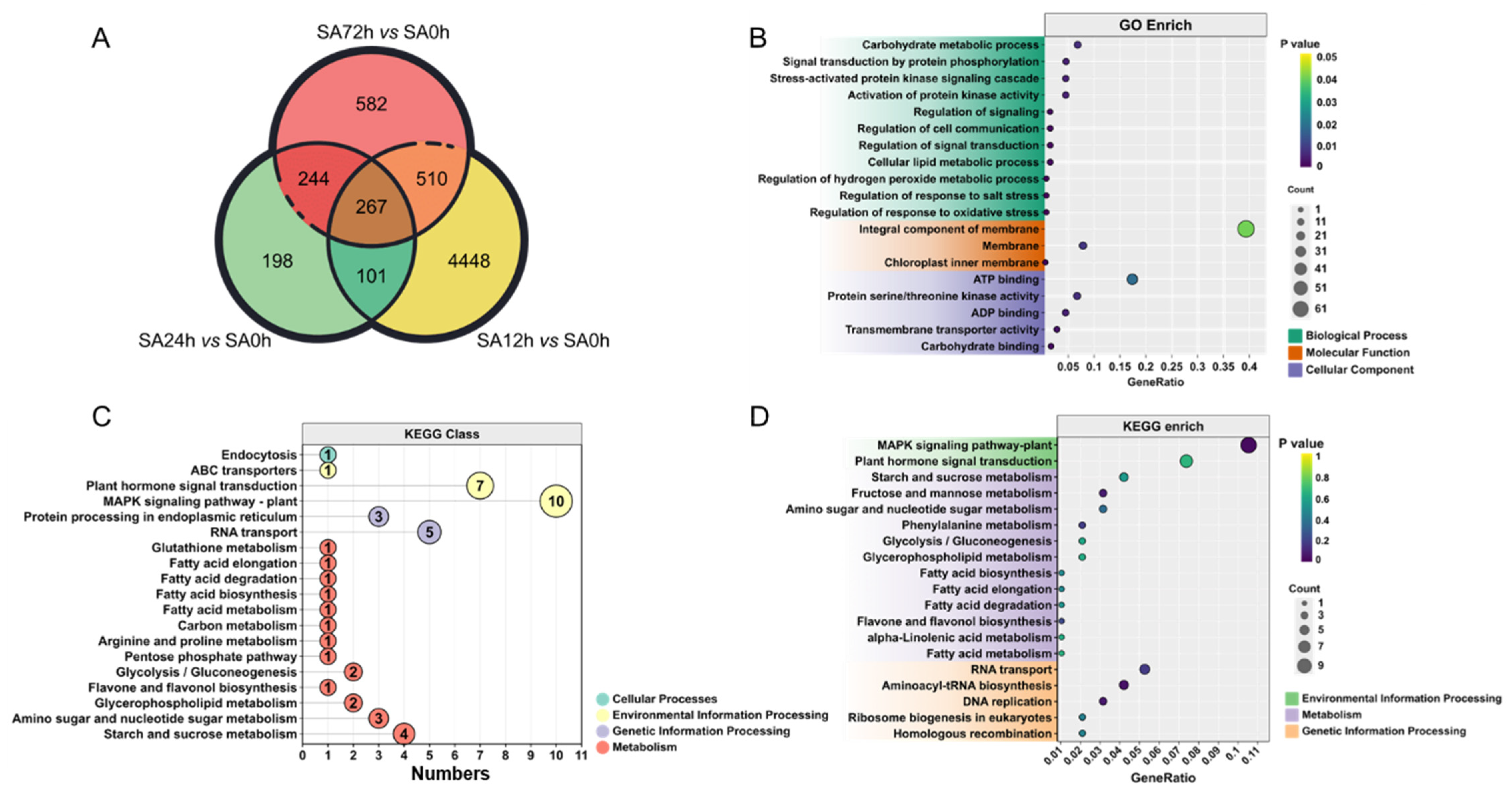2.5. Enrichment of DEGs in Z14 Sorghum Seedlings Under Alkali Stress