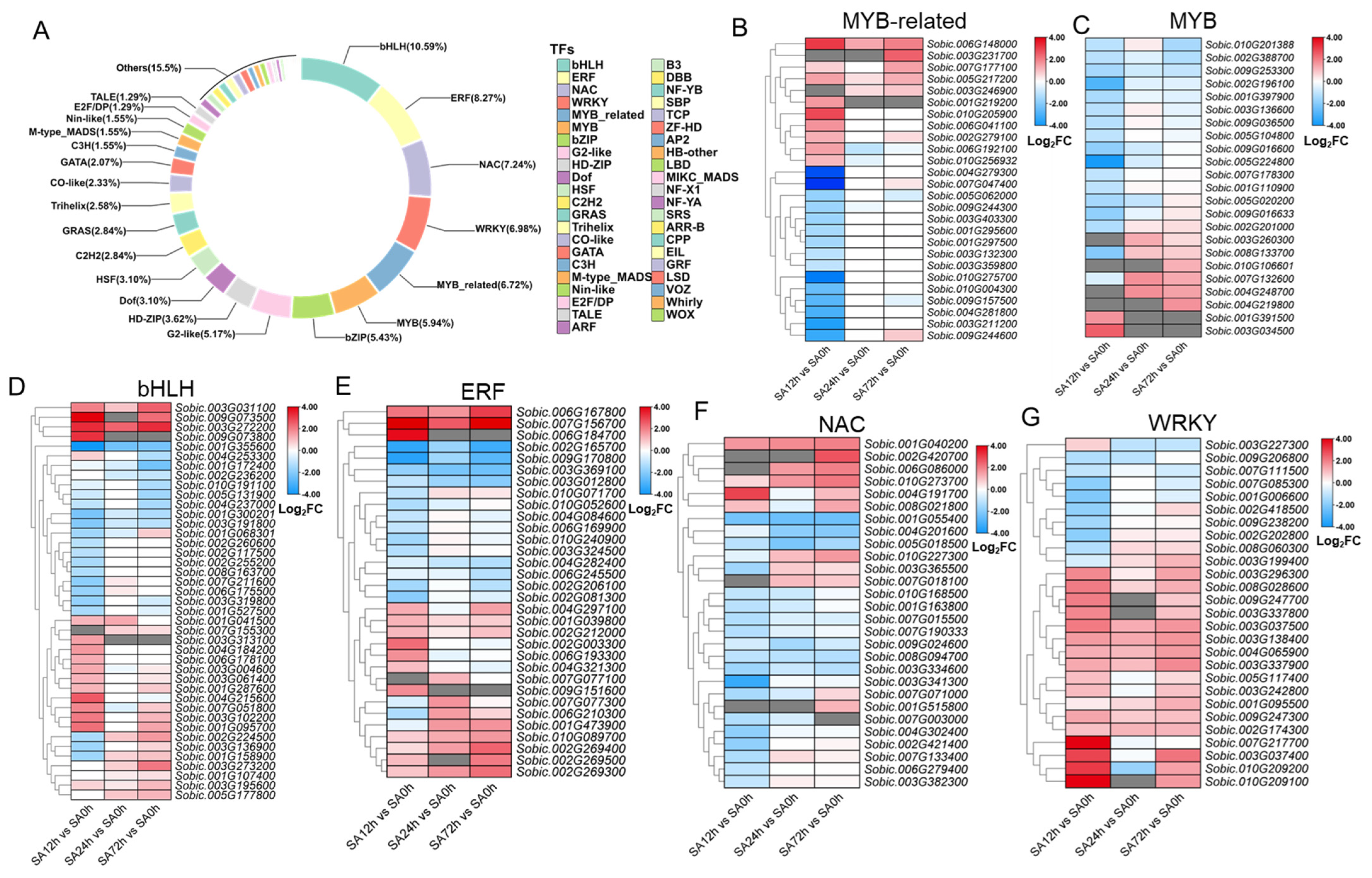 2.6. Analysis of Differentially Expressed Transcription Factors in Z14 Sorghum Leaves Under Alkali Stress