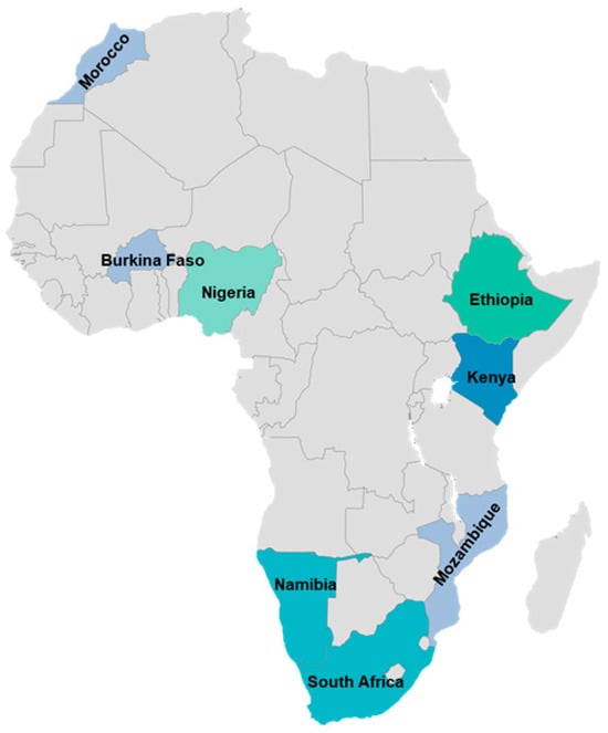 Geographical location of African countries reporting the ethnoveterinary uses of Acacia/Vachellia/Senegalia species.