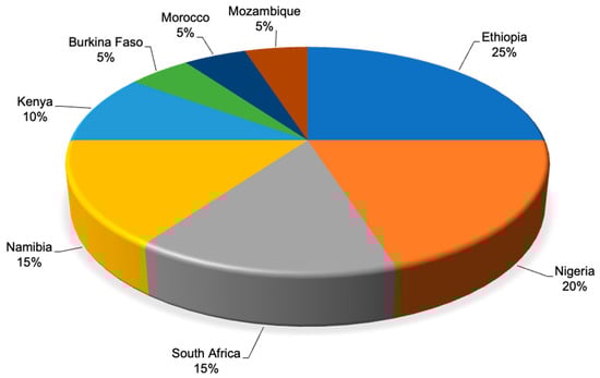 Figure 2 illustrates the geographical distribution of ethnoveterinary reports involving Acacia/Vachellia/Senegalia species across the African countries. Ethiopia had the highest (25%) report on ethnoveterinary practices and was closely followed by Nigeria with 20% (Figure 3). Following the regional trends, Table 1 summarizes the 12 Acacia/Vachellia/Senegalia species identified through a systematic review of the literature from the three databases. These plant species are used to manage various livestock diseases, with their modes of application varying depending on the condition treated. Among the plant species, Vachellia nilotica (Acacia nilotica) was the most frequently cited (25%), followed by Vachellia karroo (Acacia karroo) (15%) and Vachellia tortilis (Acacia tortilis) (10%).